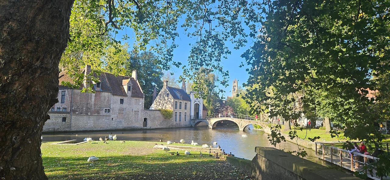 점심도 잘 먹고 1시간 30분 정도 버스에서 졸다 보니 브뤼헤에 도착했다. '사랑의 호수'길을 따라 걸어가는데 낙엽이 바람에 떨어지는 것을 보고 가을의 중심에 들어선 느낌이 들었다.