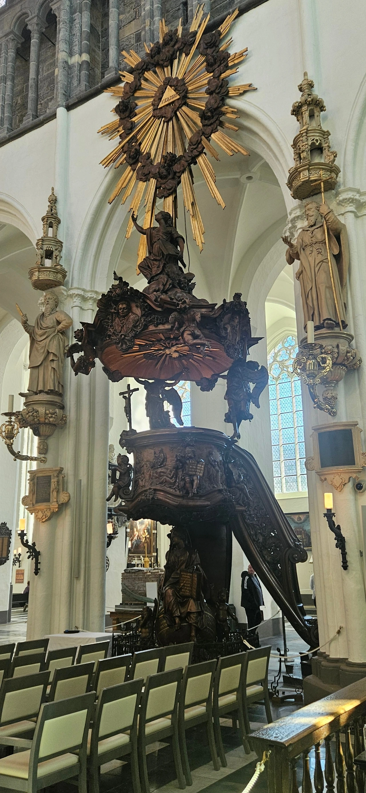 걷는 동안 운하를 따라 노니는 브뤼헤 명물인 백조도 만나고 노트르담교회라고도 불리는 성모교회 내부도 둘러보았다. 성모교회는 브뤼헤를 대표하는 건축물로서 13세기 중반부터 15세기말까지 건립되어 현재는 교회보다는 교회 박물관으로서의 역할이 더 크다고 한다.