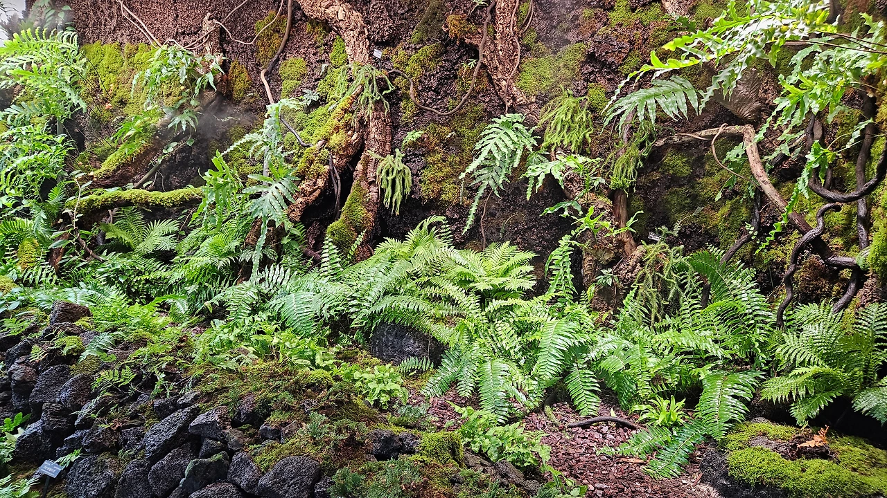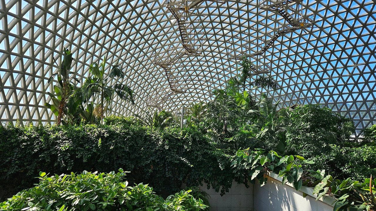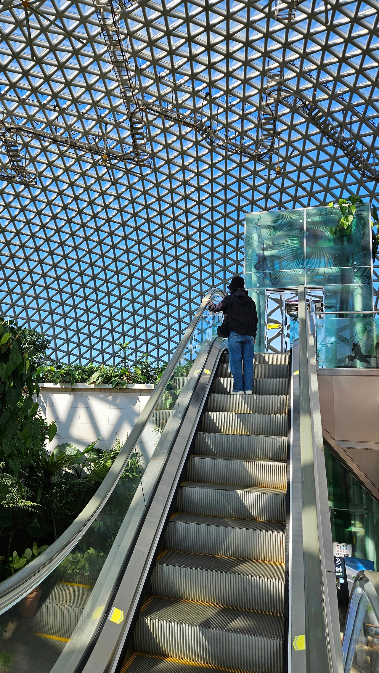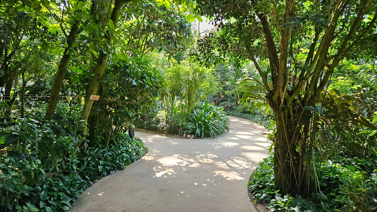 돔 내부에 들어가니 거대한 유리온실이라 비 오는 날이나 추운 날씨에는 딱이다. 에스컬레이터가 설치되어 1,2층에서 관람할 수 있는 것이 특이했고 다양한 열대 수목은 물론 생전 처음 보는 나무와 꽃도 많았다. 평일인데도 효도 관광객들이 많아 놀랐다.