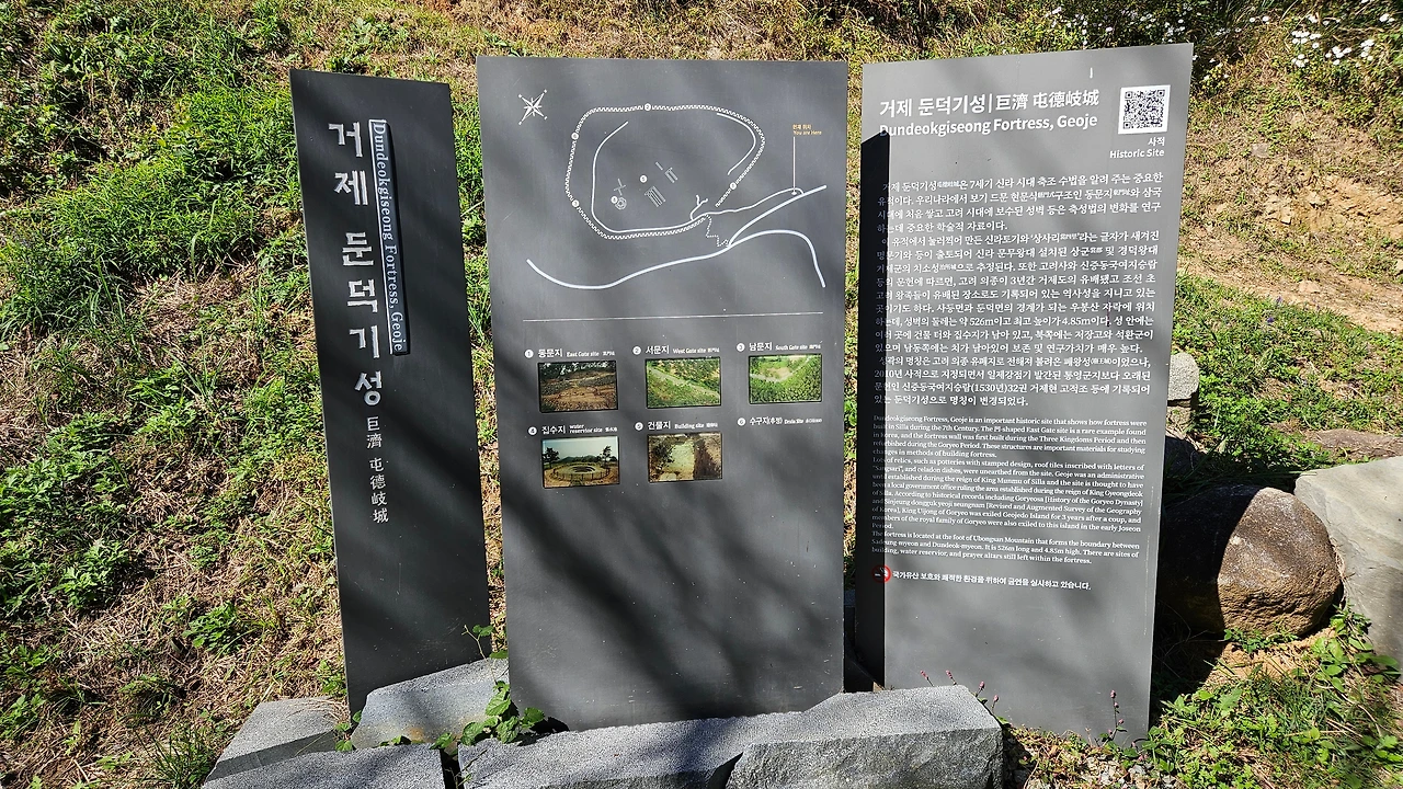 다음 코스는 거제 역사의 발원지라는 둔덕면에 있는 둔덕기성(屯德岐城)을 방문했다. 우봉산의 지봉(해발 326m)에 위치해 있지만 우두봉 주차장이 별도 마련되어 있어 비포장도로가 섞여 있지만 접근성은 좋다.