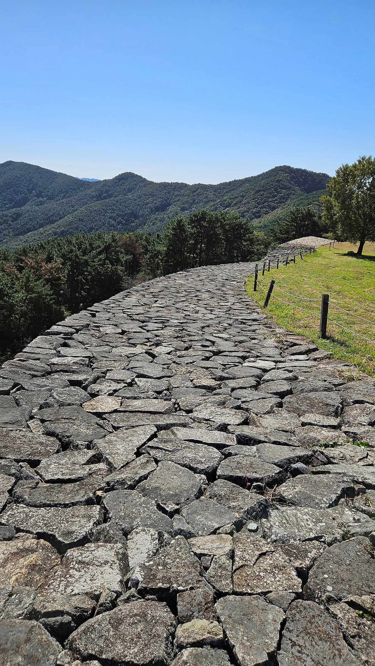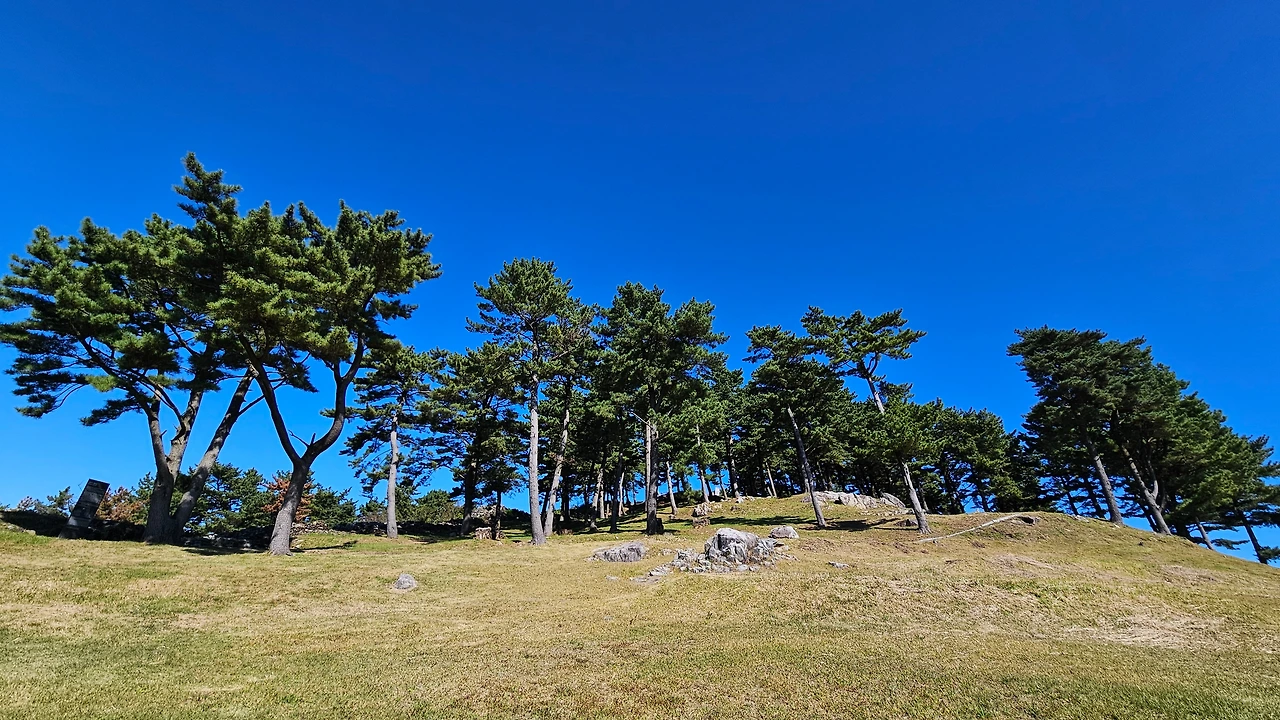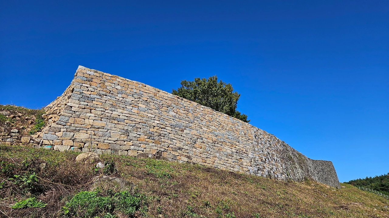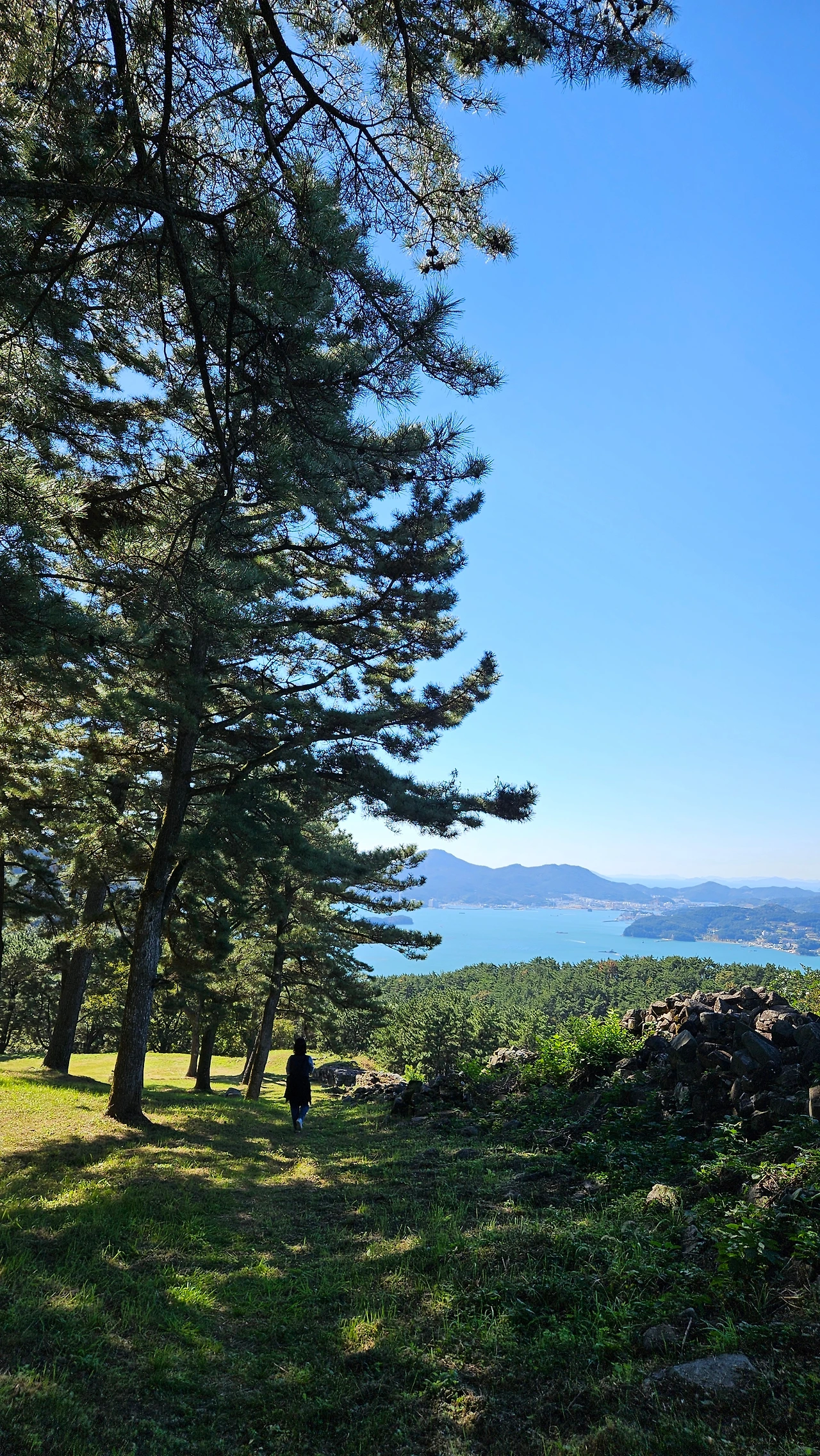 둔덕기성에 올라가는 동안 소나무 군락과 규모가 큰 성곽에 놀랐고 서문지 쪽에서 보이는 통영이 너무 가깝게 보이는 풍경에 또 한 번 놀랐다. 그동안 거제에서 올라간 성 중 최고였다.