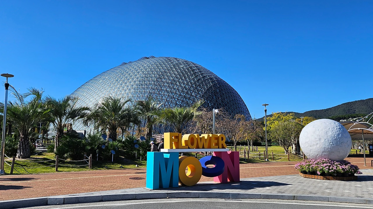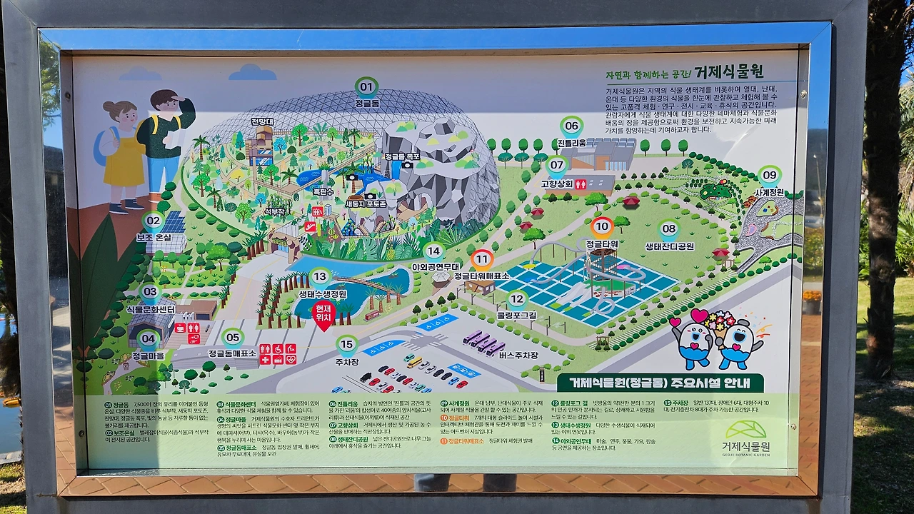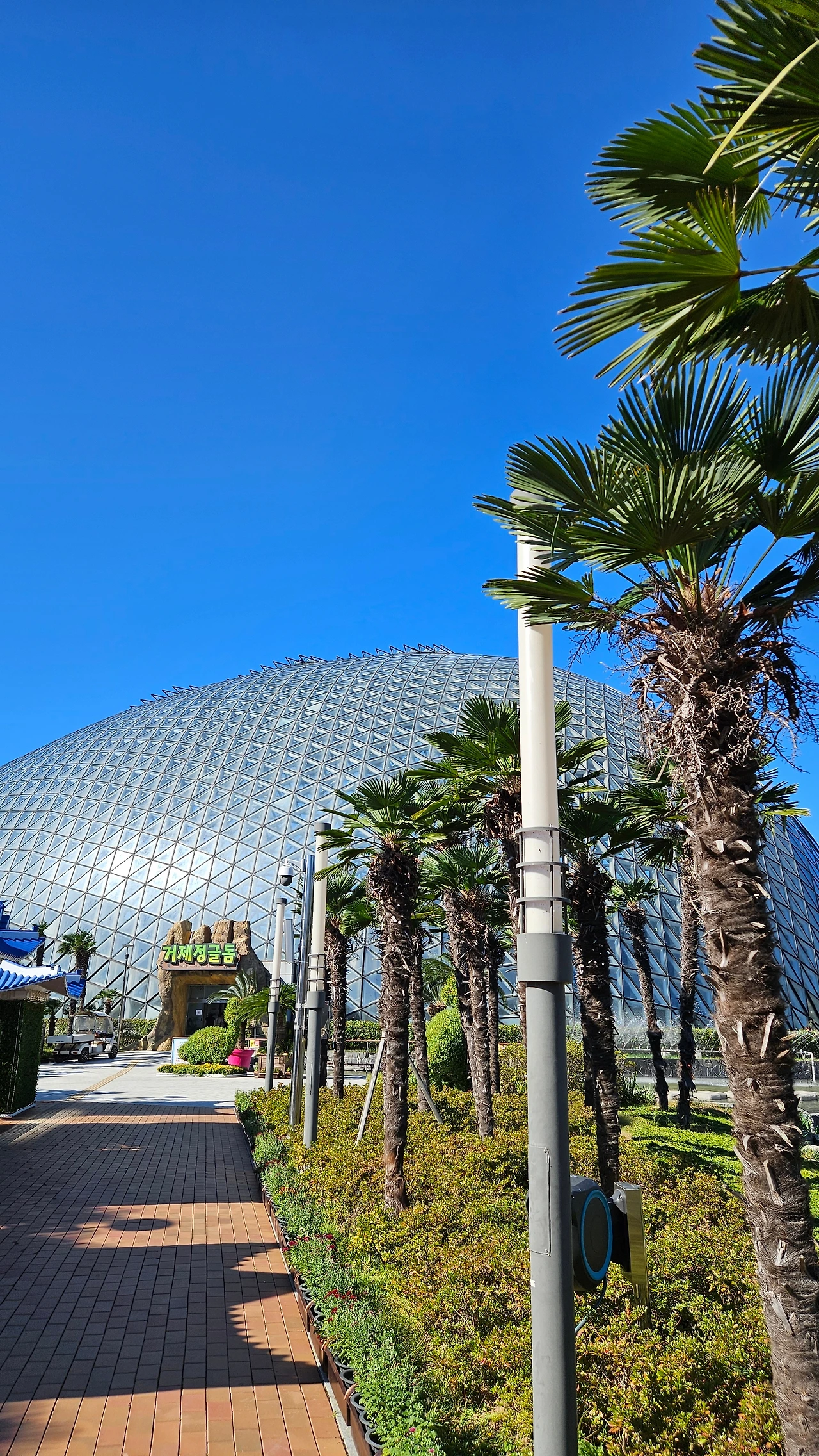 오늘 첫 번째 코스는 서부권에 있는 거제식물원을 방문했다. 주차장에서 보니 돔 규모가 어마무시하다. 4468㎡ 면적에 최고 높이 30m, 7472장의 유리로 덮여 있는 우리나라 최대 규모 식물원이란다.
