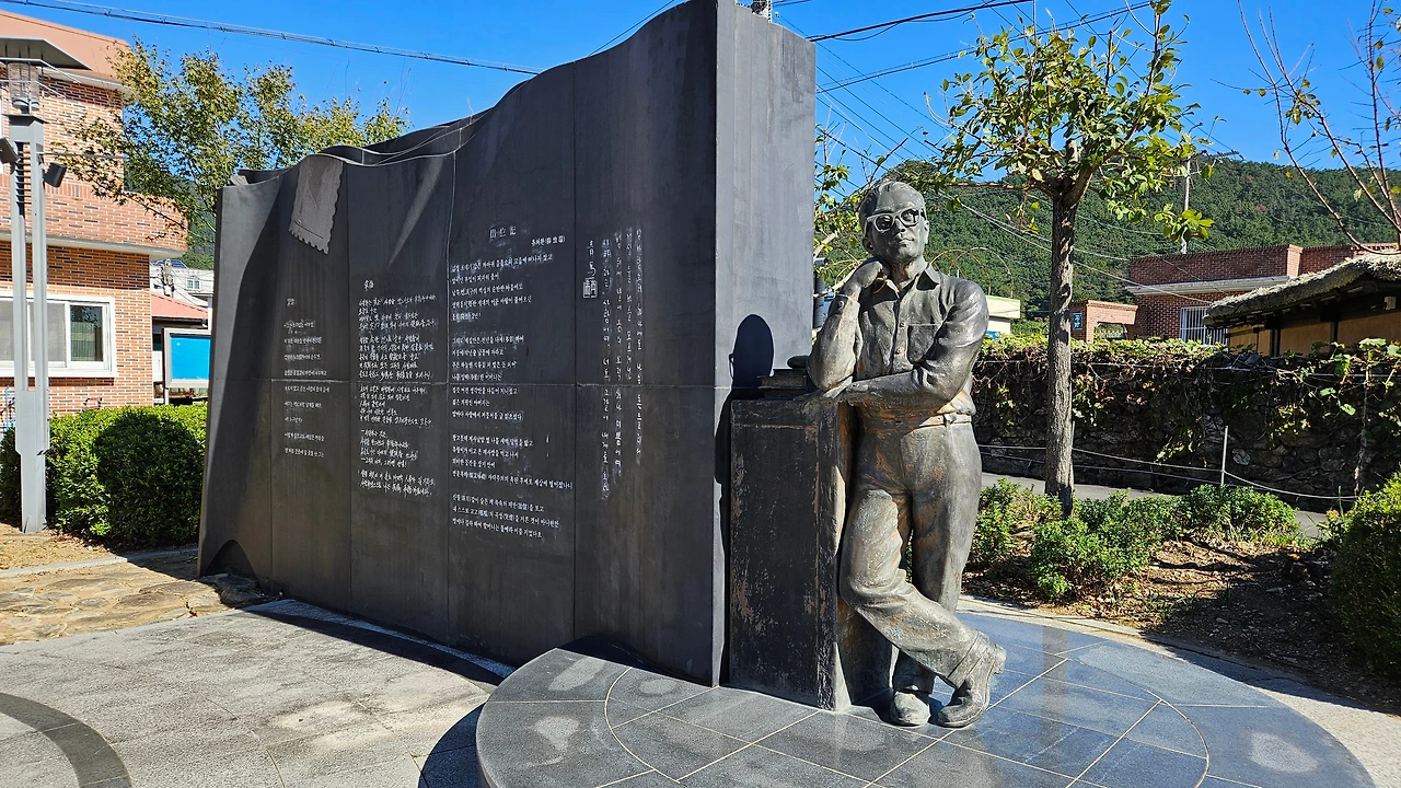 오늘의 마지막 코스는 청마 유치환 생가와 기념관에 들려 유치환 시인의 생애와 시를 감상했다. 젊은 시절 연애편지에 많이 인용했던 "사랑하는 것은 사랑을 받느니 보다 행복하나리라. 오늘도 나는 에메랄드빛 하늘이 환히 내다 뵈는 우체국 창문 앞에 와서 너에게 편지를 쓴다."라고 시작하는 '행복'이란 시를 모르는 사람은 없을 것이다.