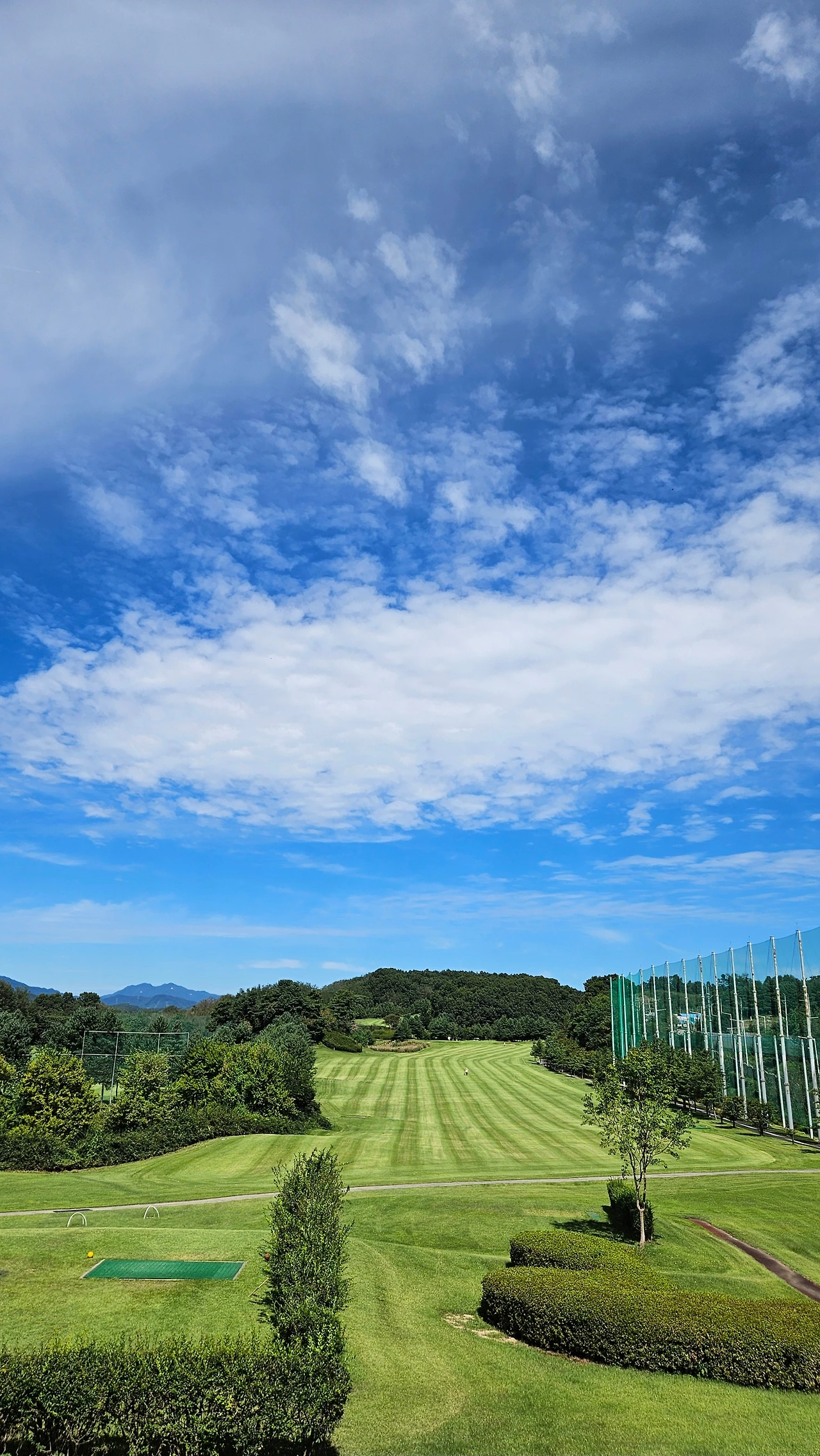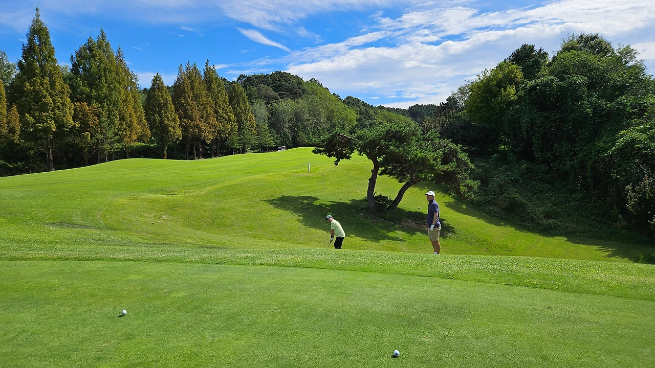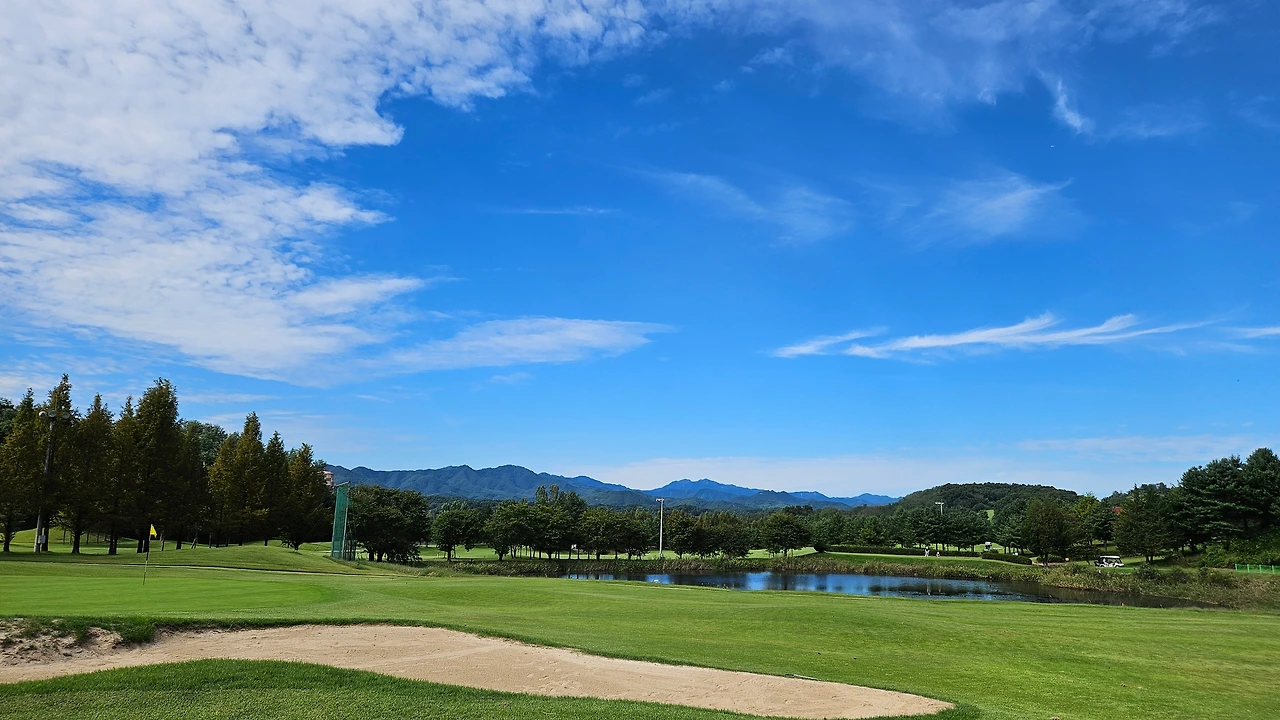 오늘은 전형적인 가을 날씨로 한낮엔 조금 더웠지만 청명한 하늘에 구름도 멋진 그림을 그려주는데 골프 치기 너무 좋았다. 페어웨이 잔디도 촘촘하니 밟는 맛도 있고 그린이 약간 느리긴 했어도 컨디션이 양호해 수도권 회원제골프장 못지않아 동반자 모두 좋아했다.