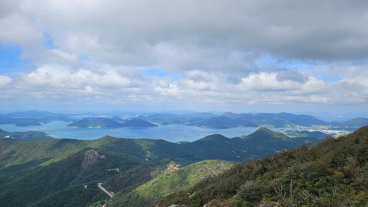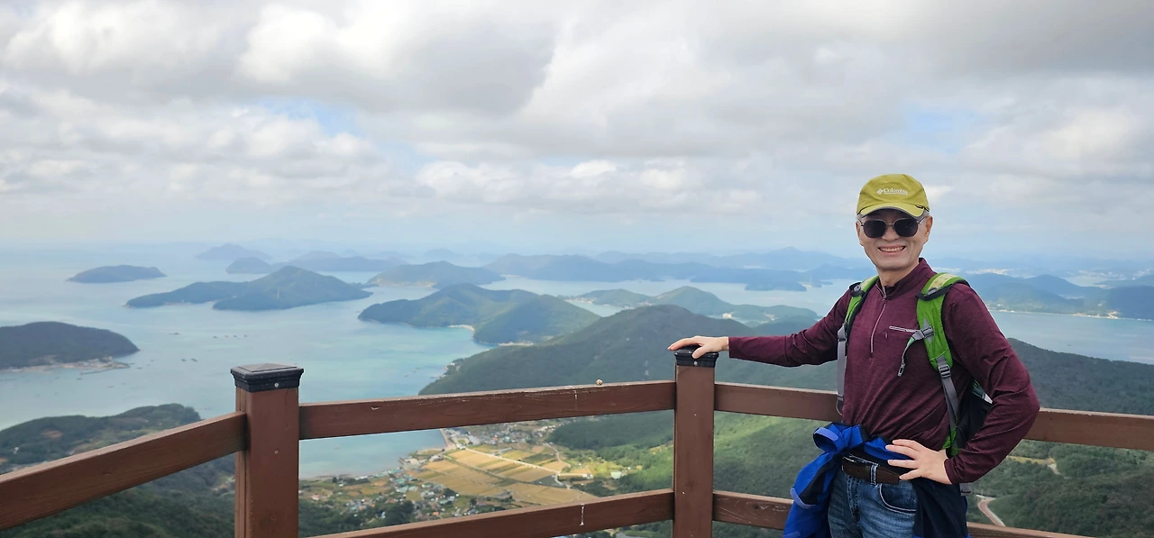 하체운동 제대로 하며 드디어 565m 노자산 정상에 오르자 360도 파노라마처럼 거제 바다를 모두 볼 수 있어 저절로 와~ 소리가 튀어나왔다. 바로 이 맛에 등산하는 거 같다.