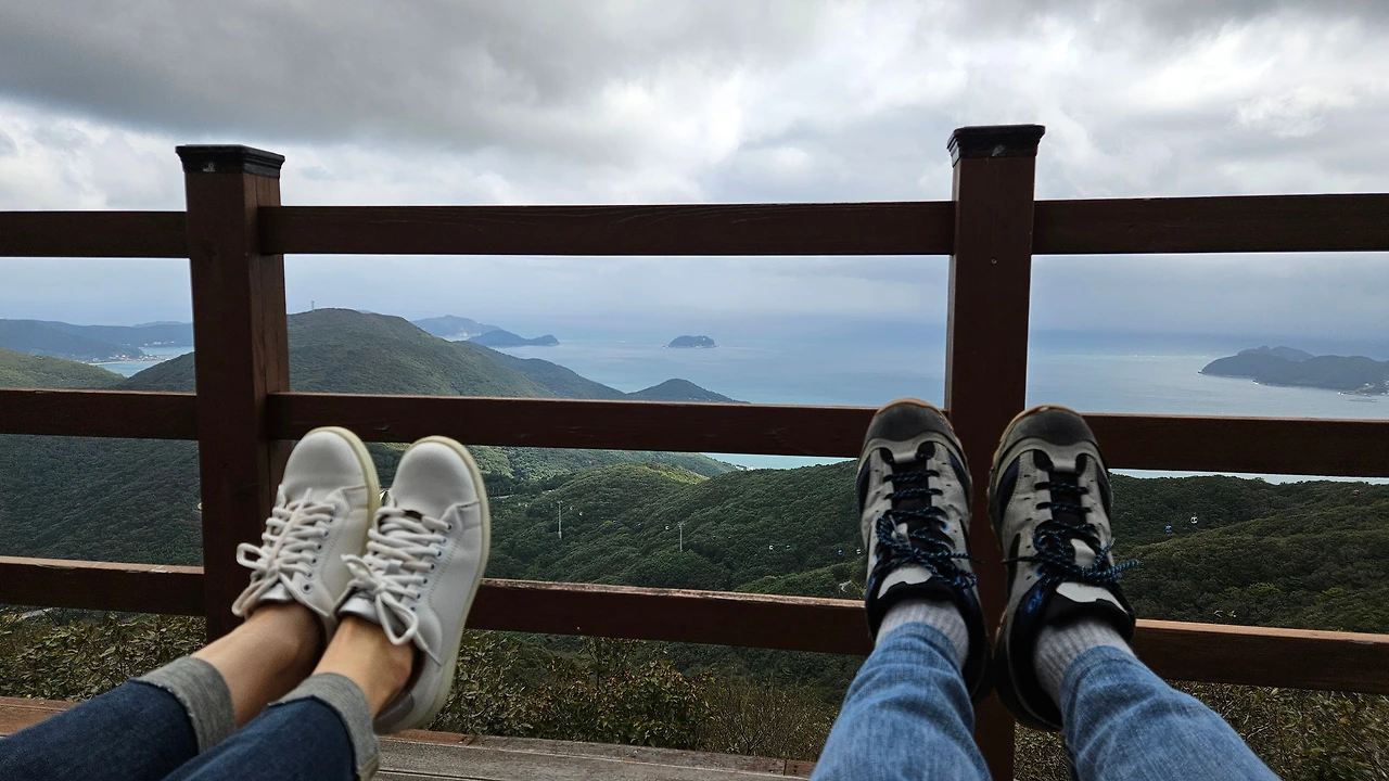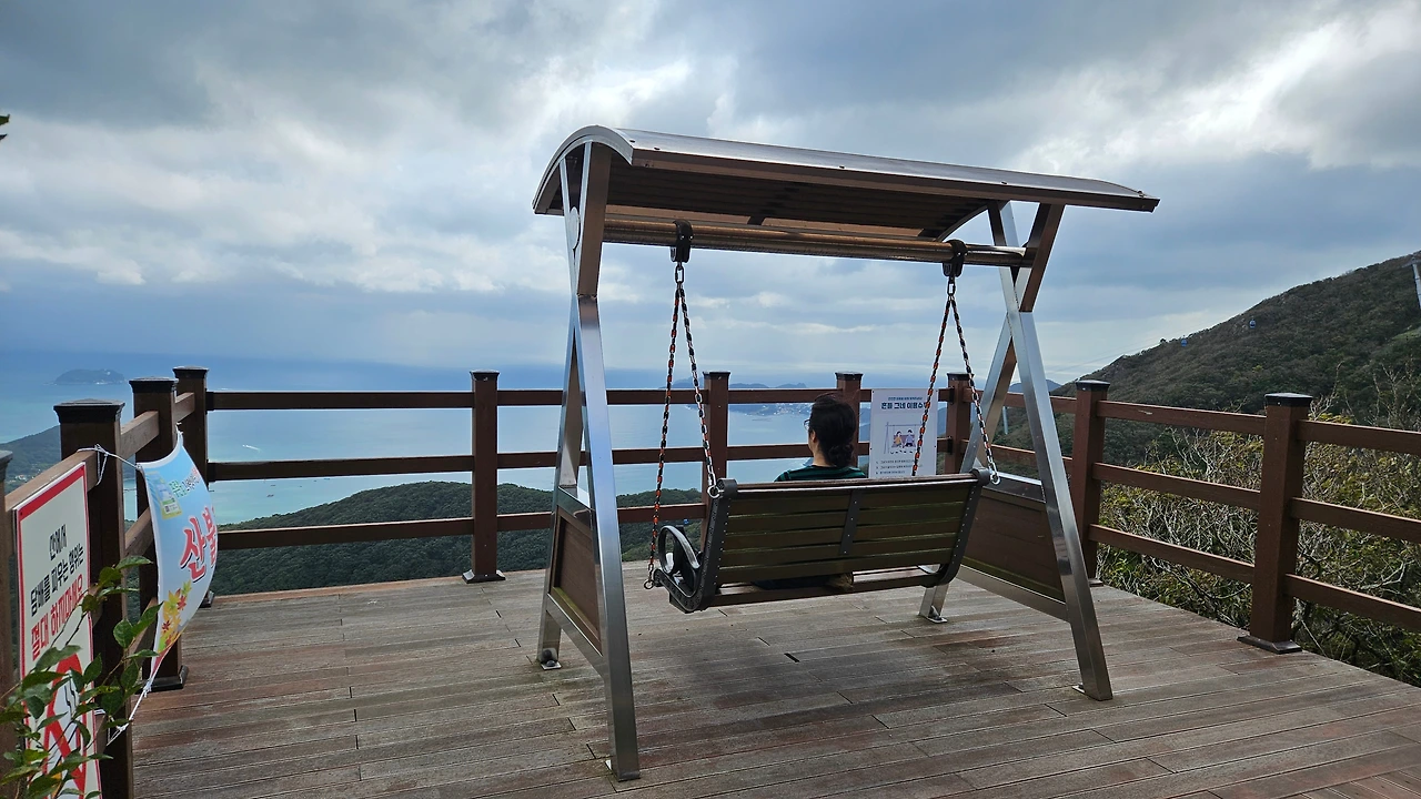 막바지 0.7km를 걸어서 데크길에 올라서니 거제 외도와 해금강이 멀리 보이기 시작하는데 풍경이 환상적이다. 데크길 중간에 바다를 향한 그네의자가 있어 아내와 동심으로 돌아가 그네를 구르며 풍경을 감상했다.