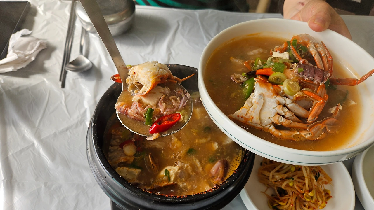 점심은 무엇을 먹을까 고민하다 여행 중 마땅한 곳이 없으면 기사식당을 찾아가면 가성비도 좋고 실패한 적이 없어 오늘도 기사식당을 찾아가 해물된장찌개를 먹었는데 꽃게, 딱새우, 오만둥이 등 내용물도 푸짐하고 역시 맛있었다.