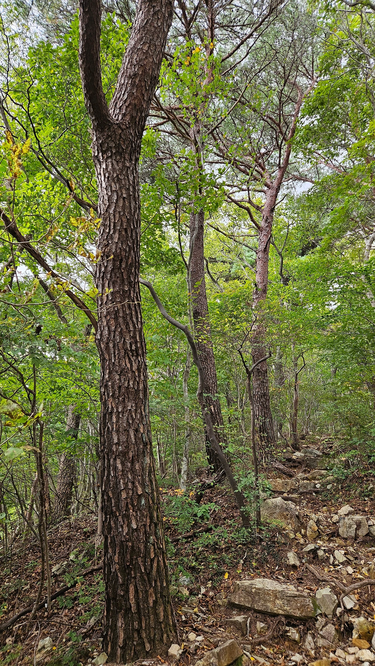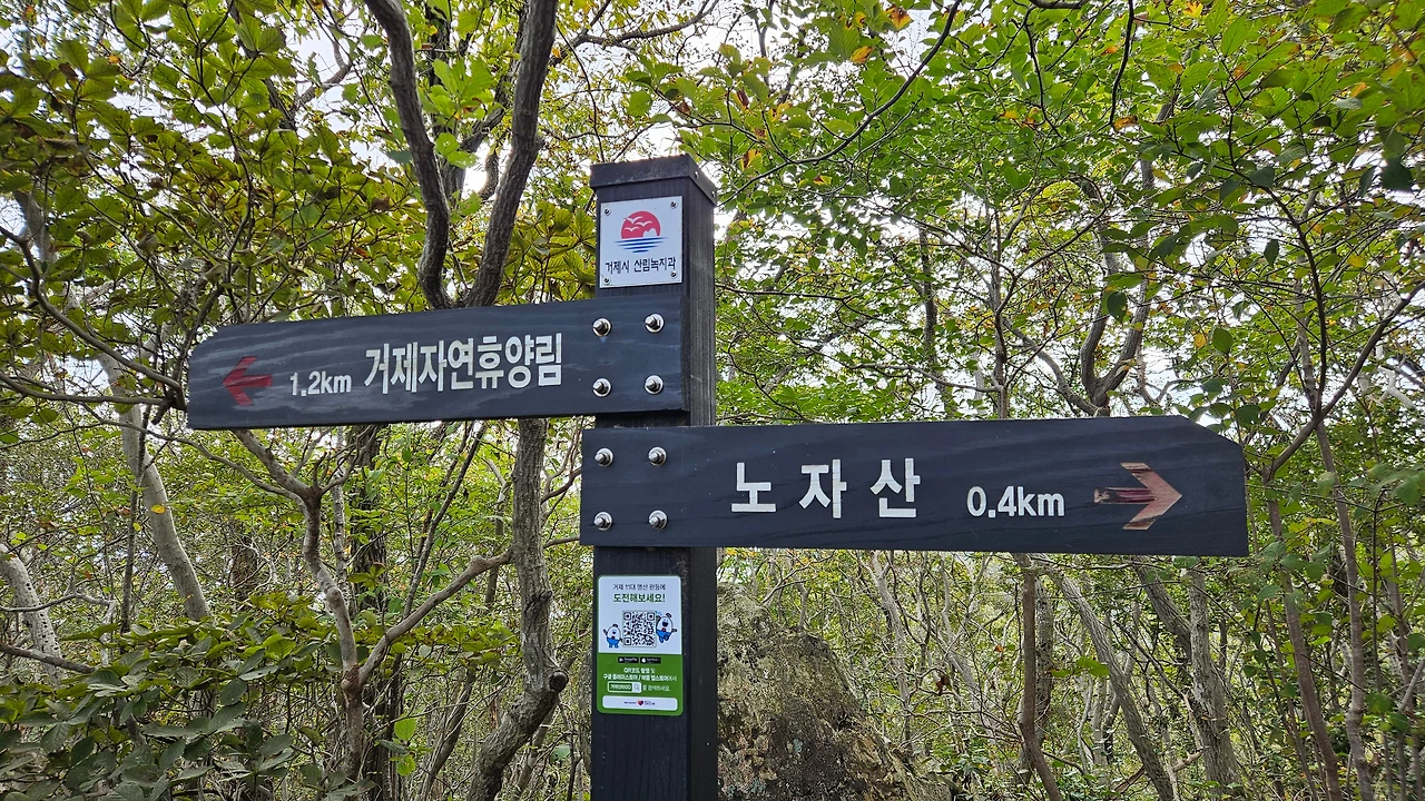 노자산은 수목이 울창하고 인적이 드문 산으로 불로초가 있다는 전설과 기암절경이 어우러져 '노자산'이라는 이름이 유래했다고 하는데 하산할 때는 가파른 등산로 대신 돌아가지만 안전한 임도로 내려갔다. 하산 중 비가 내리기 시작해 제주에 이어 두 번째로 큰 섬인 거제의 날씨도 변화무쌍하다는 생각을 했다.