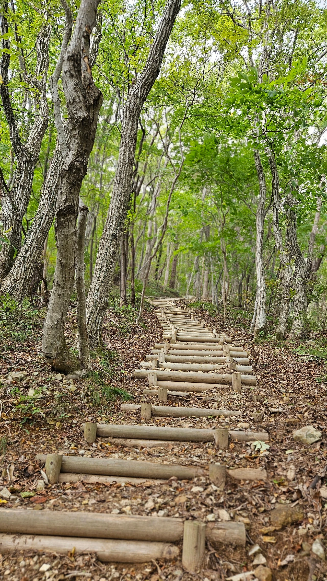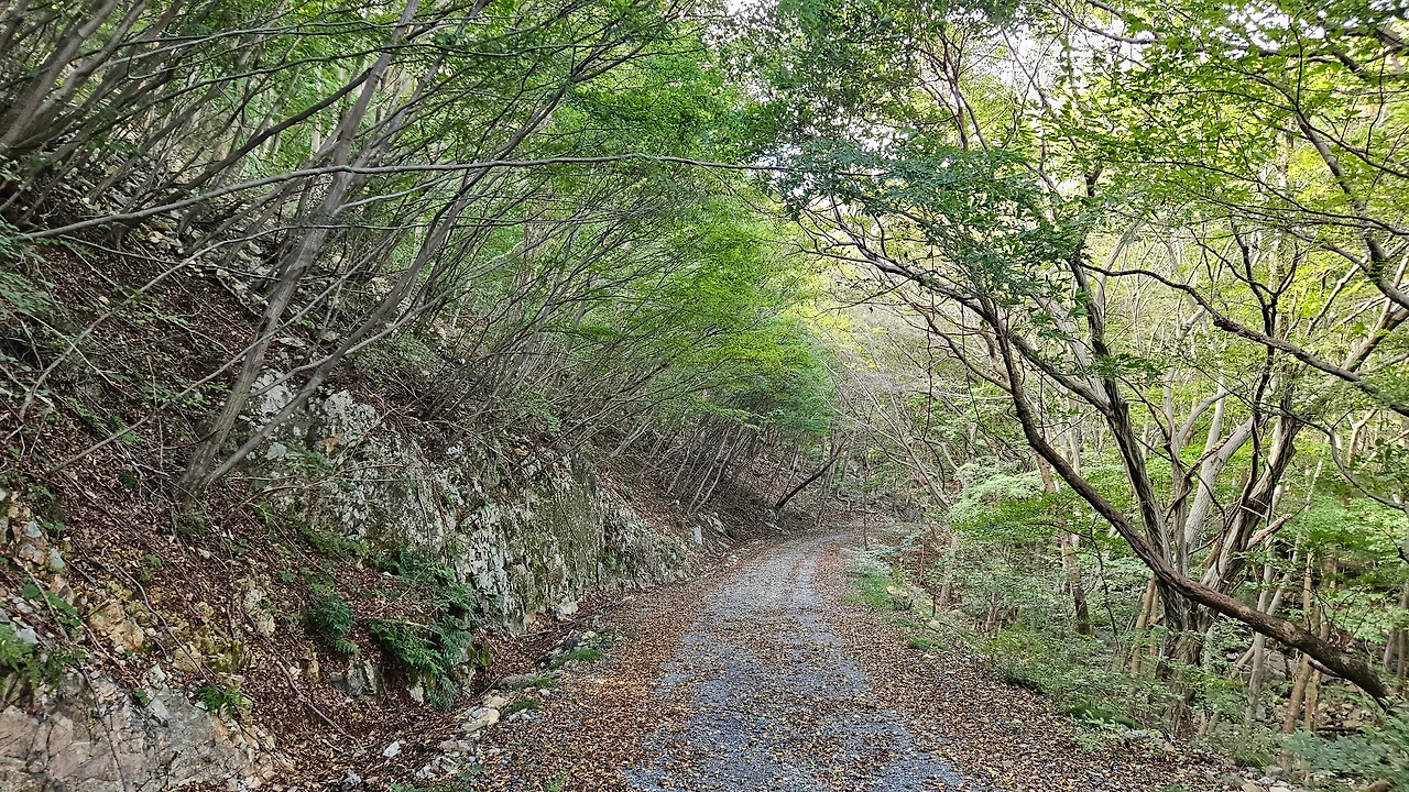 휴양림 입구에 들어서니 군데군데 숙박시설은 많이 보이는데 기대했던 아담한 숲길은 없고 산책로 수준이라 노자산 등산코스로 바꿨다.