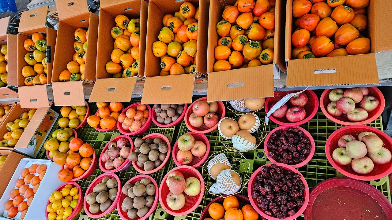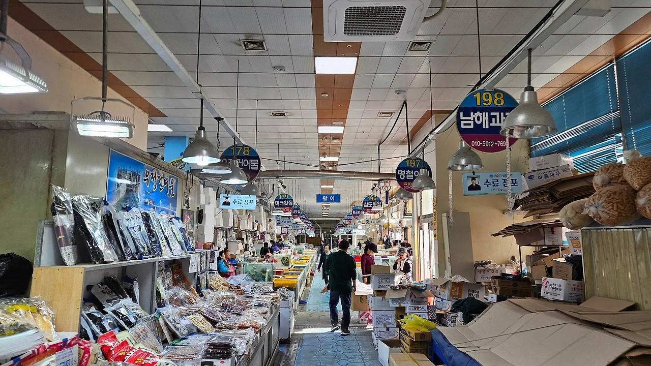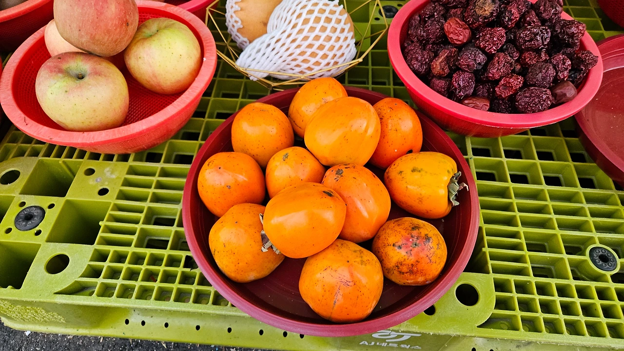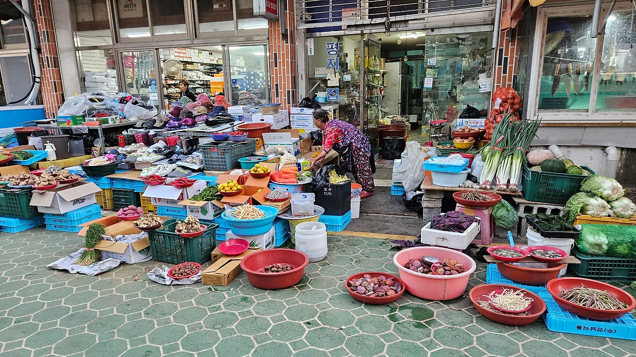그래서 시장 상인에게 물어보니 요즘은 6시 30분에 열리고 10시 30분에 파장한다고 했다. 아쉬움을 달래며 내일 거제로 귀한 손님이 오시는 날이라 상점에서 사과, 배, 대봉홍시 등 사서 숙소로 돌아왔다