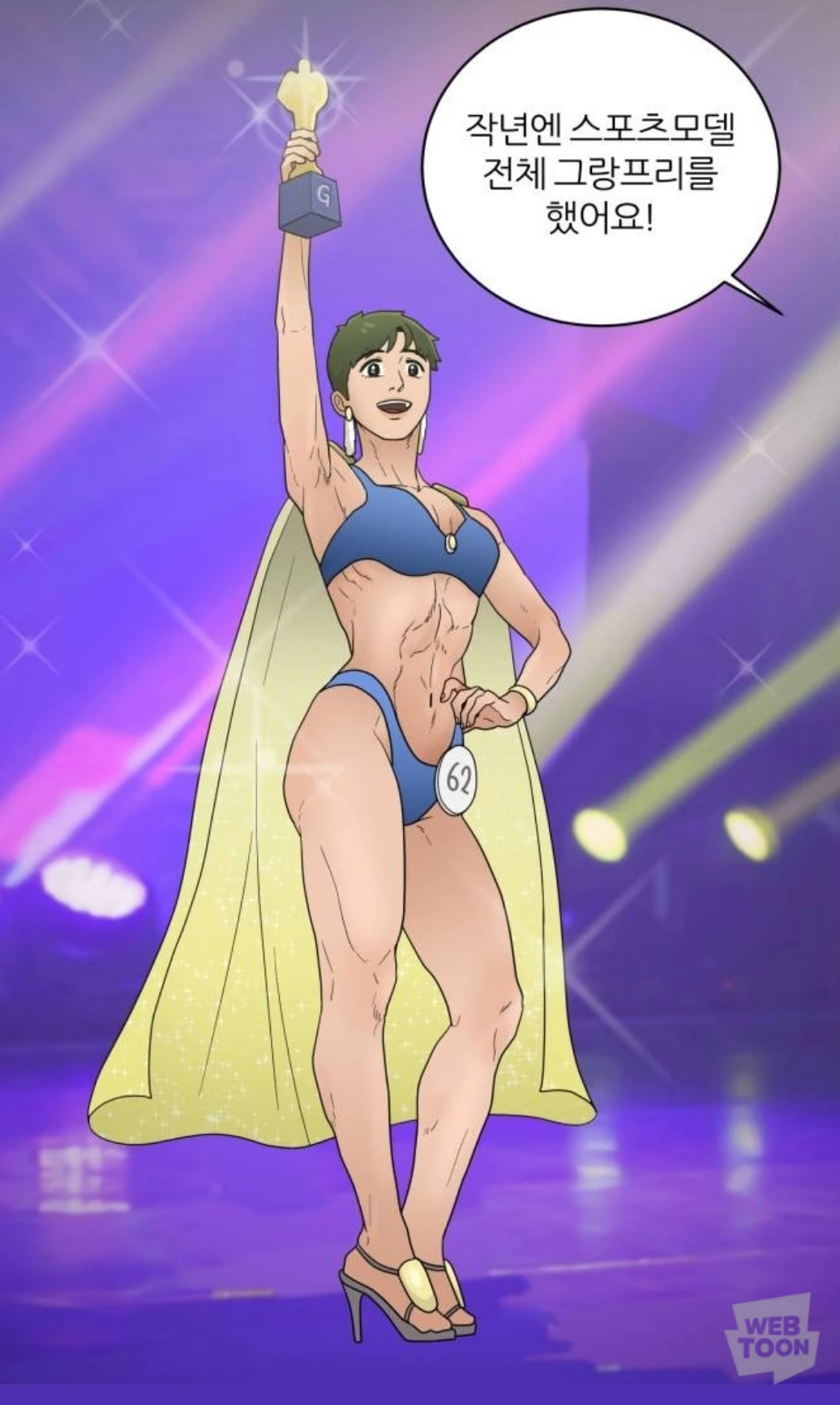 진달래의 권유로 지현은 헬스장 아르바이트를 시작하게 되고, 스포츠 지도사 2급 자격증을 따게 됩니다. 그리고 마침내 스포츠 모델 그랑프리까지 취득하게 되죠.