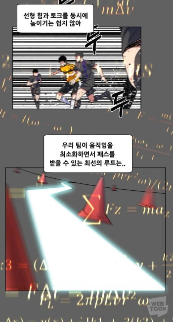자신이 원하는 궤적으로 공을 패스하기 위한 각도를 순식간에 계산한 뒤 그에 맞는 힘으로 공을 차서 정확한 위치에 패스하는 안시준. 처음에는 과연 이렇게 축구를 해도 되는 것인가 의심을 품던 시준은 자신에게 축구를 제안한 친구가 보내는 믿음으로 용기를 얻게 됩니다. 그리고 24화 수진고와의 대결에서 결정적인 골 득점에 성공하게 되죠.