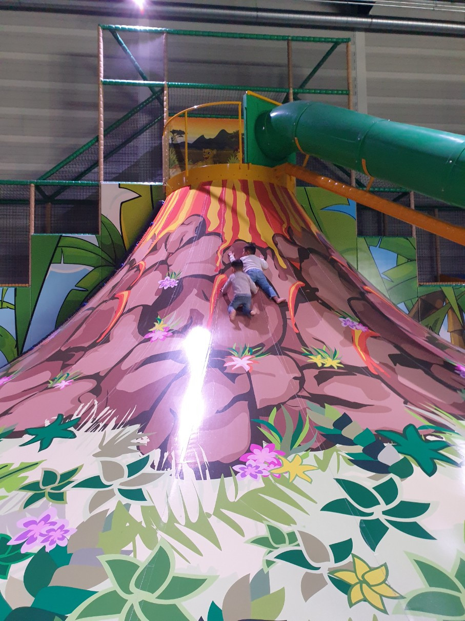 실내놀이터의 '화산'을 올라가는 김화란의 두 아들들