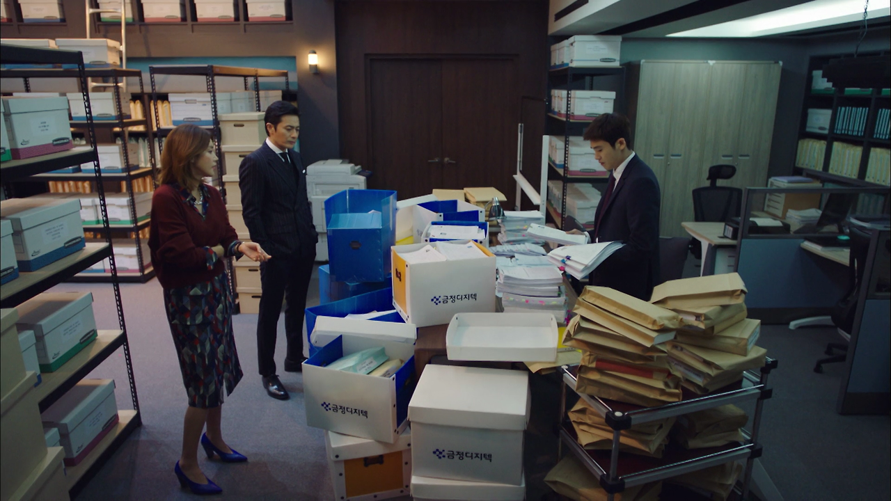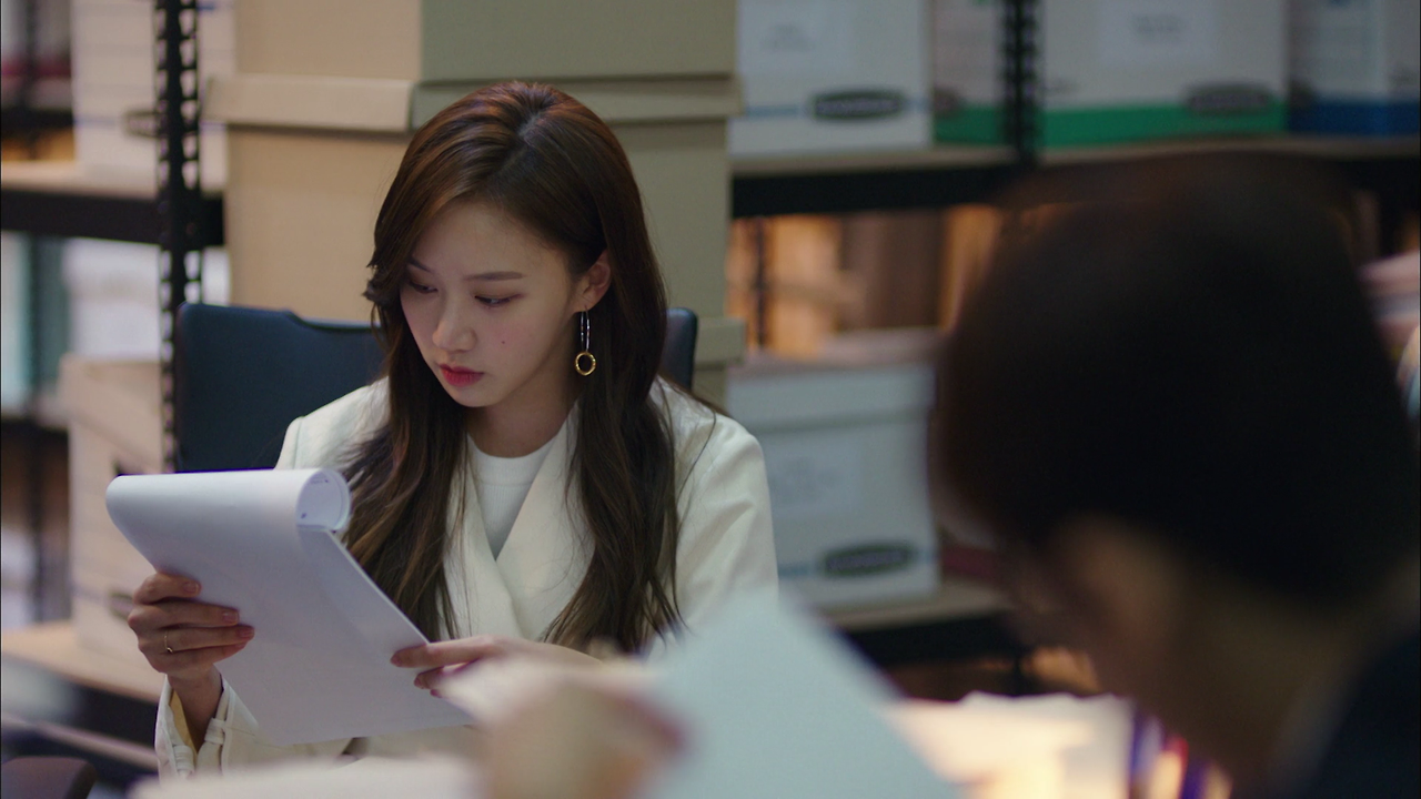 고연우는 강&함 김지나 주임으로부터 도움을 받아 상대방 회사로부터 받은 서류 뭉탱이를 모두 검토합니다. 김지나 주임은 슈츠의 중요한 주인공 중 한명인데요, 한국 드라마 특유의 러브라인 냄새가 달달하네요.