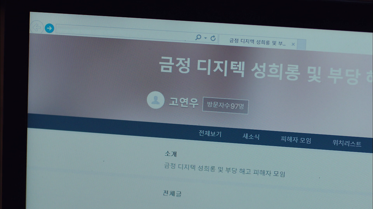 이야기로 돌아와서 고연우는 회사 내부에는 성희롱을 증언해줄 사람이 없을 것으로 판단하고, 같은 회사에서 성희롱 피해를 입은 피해자들을 온라인으로 수소문하기 시작하여 여론으로 법원과 상대방 회사를 압박합니다.