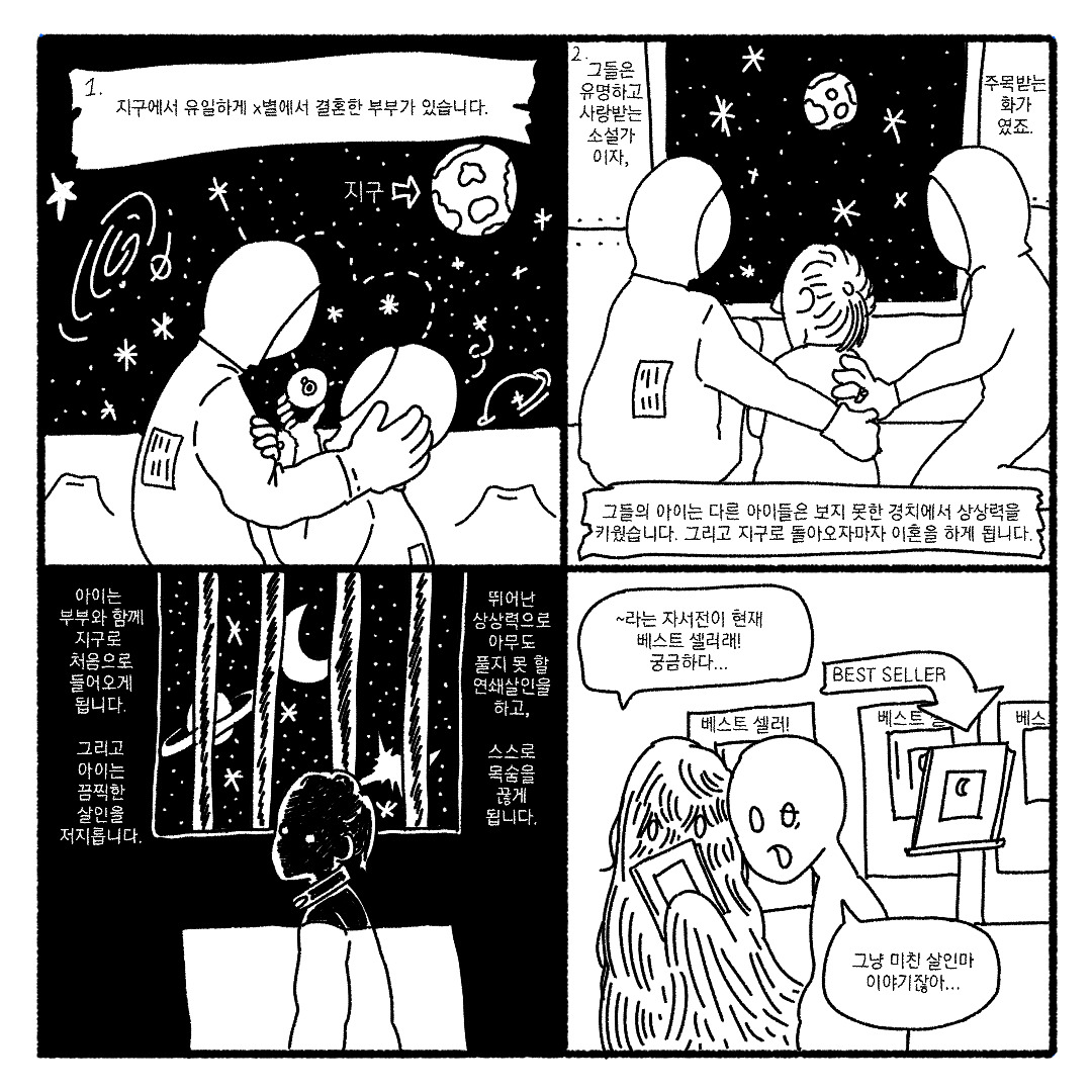 저 소설책을 만화로 그려보고 싶었어요. 하지만 전 천재가 아니라서 천재 주인공을 쓰지 못하겠어요...!