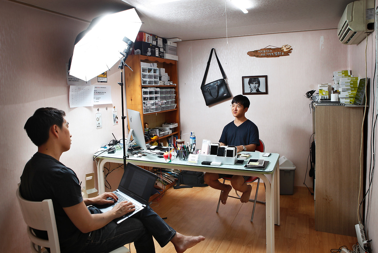 그의 사무실엔 부서진 아이폰/아이패드를 들고 그의 수리를 기다리는 고객들로 넘쳐납니다. 제가 인터뷰를 위해 그를 찾았던 수요일에도 그의 전화기는 쉴 새 없이 울려댔고 그의 방 또한 쉴 새 없이 분볐습니다.
