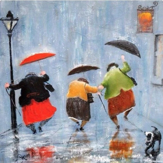 이 빨강 우산과 컬러 스커트로 전혀 구루미 하지 않고, 작은 우산으로 가릴 수 없을 만큼의 뚱뚱한 몸집은 이미 젖었겠지만 한사코 신발만큼은 적시지 않으려는 모습에 큐트 한 텐션이 있다.
