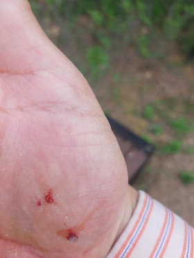 손바닥에서 피가 난다.