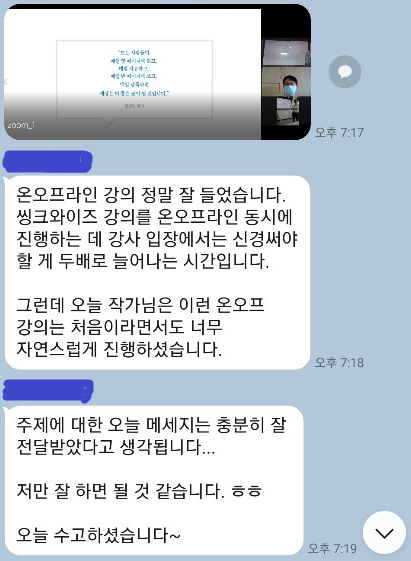ZOOM이라는 도구로 온라인으로 강의도 해보고.................., 정강민 참 많이 컸네요^^