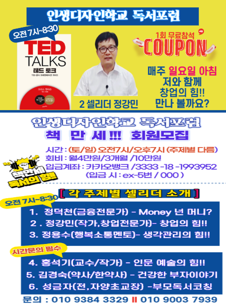 다음 주부터는 <테드토크>로 매주 일요일 아침 7시에 독서토론 합니다.
