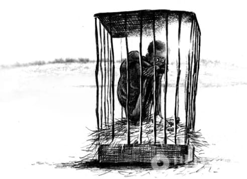 철창 안에서 단식하는 모습을 40일 동안 관객에게 보여준다.