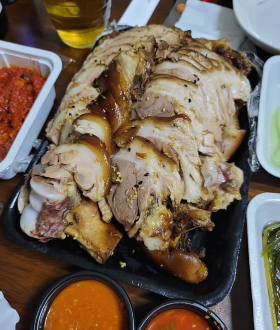 창밖을 보니 아파트에 족발 파는 아저씨가 보였습니다. 바로 내려갔습니다. 메밀소바 대신 족발이었습니다.