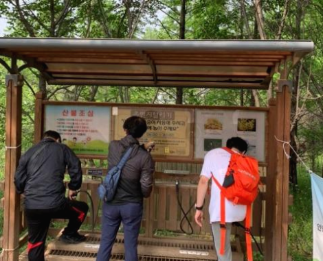 도서관에서 산 입구까지 5분도 걸리지 않습니다. 어제 에너지를 투입해서 그런지 오늘 오전은 영 집중이 안 되어 어슬렁거리다 산 입구까지 갔습니다. 평일 오전 사람이 많지 않아 조용하더군요. 먼지 터는 기계에 두 분이 있습니다. 취~~ 하는 바람소리가 크게 들립니다. 저도 신발도 털고, 옷도 텁니다. 산을 오르지도 않았는데 먼지 터는 제 모습이 좀 어색합니다. 저를 쭉 지켜본 사람이 있었다면 ‘아니 산도 오르지 않았는데, 먼지를 왜 털어요?’ 라고 할 것 같습니다.