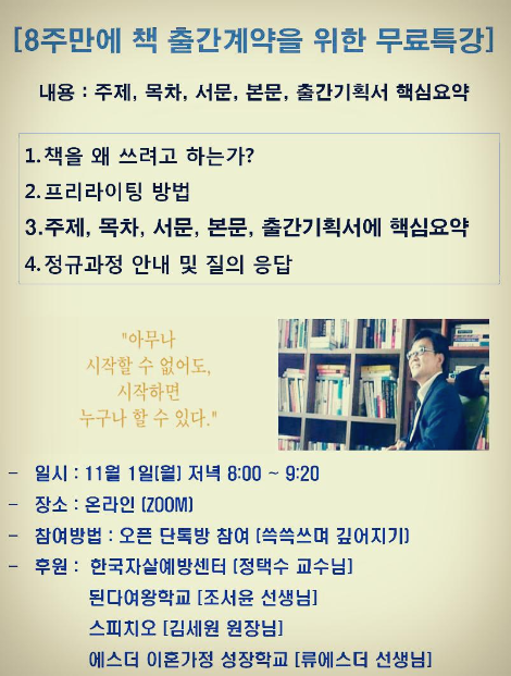 <한국자살예방센터> 정택수 교수님께서 책쓰기 특강 후기를 남겨주셨습니다.