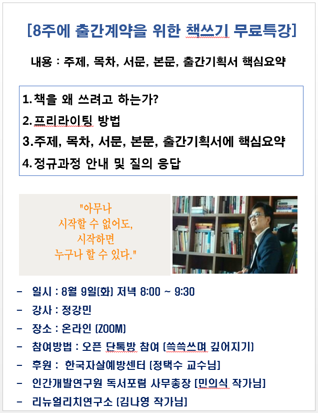 # '책쓰기 무료특강' 참여하실 분들은