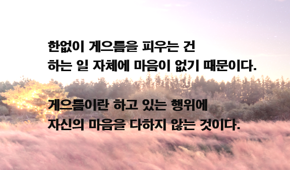 공부 자체가 아니라 출세나 성공을 위해 또는 다른 목적을 위해 공부를 하게 되면, 아무리 열심히 해도 게으른 것이다. 마음에서 시작되지 않았기에 그런 공부에는 지속력이 결여된다.