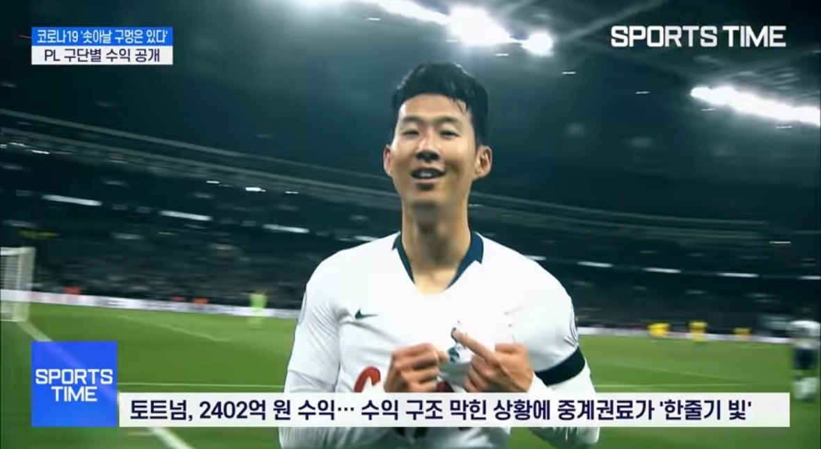 슈퍼스타 소니의 토트넘은 2,402억원, 1위 팀과 약 200억원 정도 차이가 난다.
