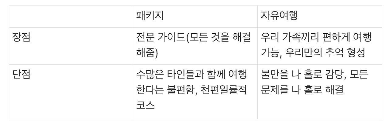 컨설팅은 패키지와 자유여행의 장점을 융합한다.