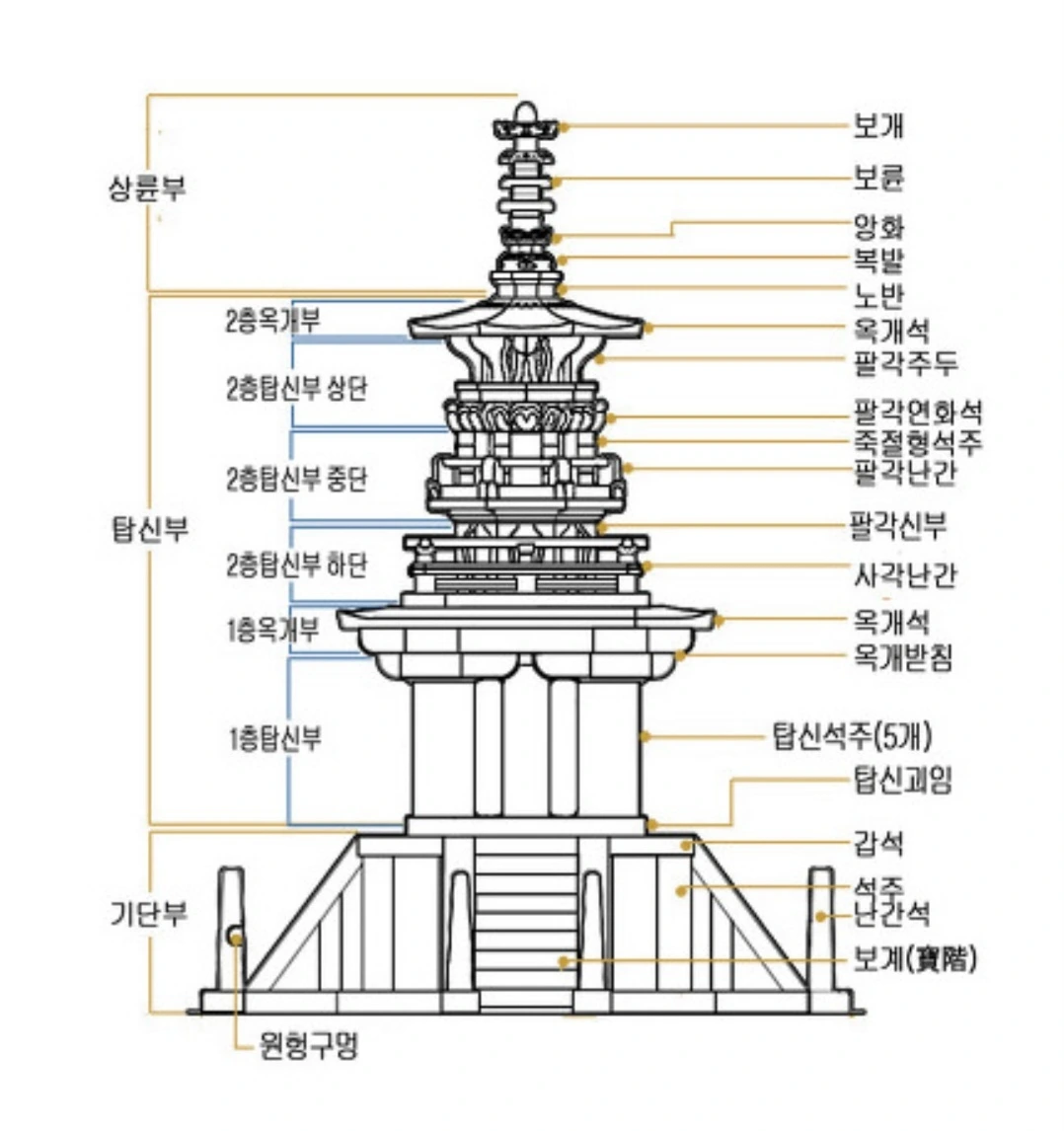 빗방울이 제법 굵은 탓인지는 모르겠지만 불국사 출입문은 한산했다. 나는 속으로 쾌재를 부르며 서둘러 다보탑으로 갔다. 대웅전 앞에서 비를 맞고 서 있는 다보탑과 석가탑은 그야말로 고색창연하였으나 내 눈엔 더 이상 풍경으로 잡히지 아니하였다. 석가탑과 대웅전을 버리고 오로지 다보탑에 집중하였다. 일단 탑 기단의 전체 폭과 기단부 높이, 석주와 난간석의 두께, 탑신 석주의 높이와 두께를 스님들 눈길을 피해 가며 재주껏 실측하였다. 옥개석 부분은 탑신 석주의 배치 비율대로 예측하였고, 2층 탑신부 상, 중, 하단의 팔각신부와 난간, 상륜부의 보륜과 양화, 2층 옥개석은 탑 기단의 폭을 베이스로 하여 목측하였다. 그리고 팔각 연화석과 난간, 신부 및 주두, 옥개석 등 가공이 까다로운 부품들의 유사 형상 구현, 가공 및 조립 용이성에 신경을 집중했다.
