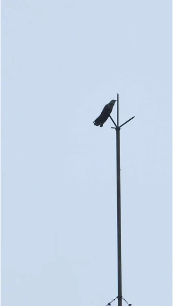 검은색 빨래집게 같은 까마귀 한 마리가