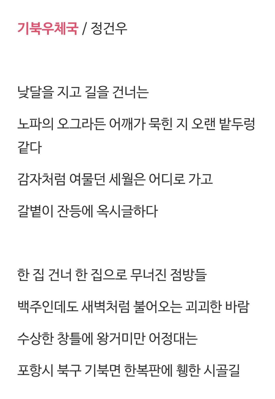 자작시, 시로 쓰는 Essay, 정건우의 브런치스토리 Seessay입니다. 시를 사랑하는 사람은 모두가 친구입니다. 고향은 강원도 양구며 현재 포항에 삽니다.