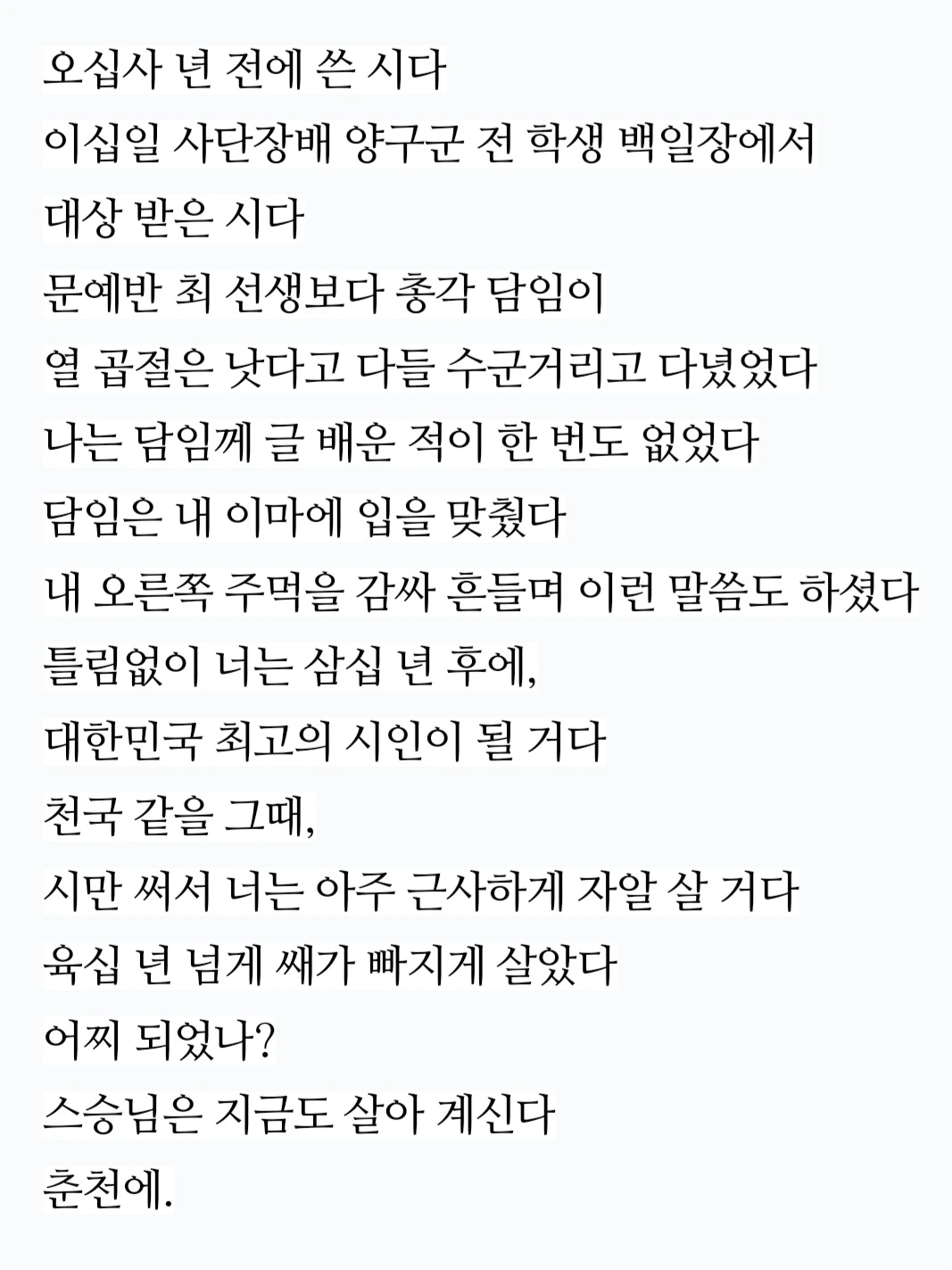 너는 틀림없이 삼십 년 후에 대한민국 최고의 시인이 될 거다