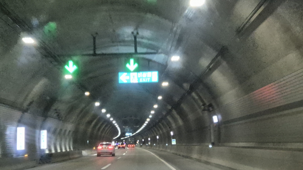 워낙 긴 터널이라 운전할 때 많이 긴장해야 한다. 어둠이 짙기 때문이다. 한 오 분여를 깜깜한 암흑 속으로 달리는 스트레스는 만만치 않다. 어떤 지인은 이 터널을 지나가다 육박하는 어둠과 이질감의 공포로 국도로 돌아간 적도 있었다고 한다. 나 역시 긴장을 풀지 않고 온 신경을 백미러에 두고 운전에 집중한다. 터널을 빠져나와서야 비로소 안도하지만, 다시 돌아올 걱정으로 받는 스트레스도 제법 있는 편이다.