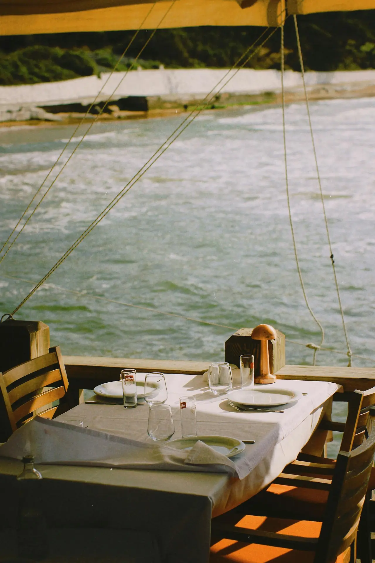 지붕에 돌 얹은 벙커 같은 식당에서