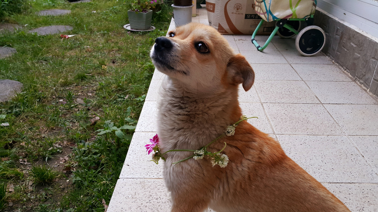 어쩌면 아이는 부모의 그릇만큼 담기는 것처럼 정이도 우리식으로 키울 수밖에 없었다. 처음부터 집안에 들이는 개로 데려오지 않았기에 옥상에서 그 일이 있음에도 바깥 계단 밑 공간으로 집을 옮겼고 마당과 옥상을 왔다 갔다 하며 놀게 했다. 추위와 더위도 온몸으로 맞아 일 년에 털갈이를 두 번씩 해 따로 목욕을 시키지 않았다. 계단을 오르내리다 한쪽 발에 인대가 늘어났지만 자연 치유력을 믿어 시간으로 회복시켰다. 당연히 줄에 묶어놓은 적도 없어 따로 산책이 필요 없었고 오히려 목줄을 하고 대문 밖을 나가는 걸 두려워했다. 한마디로 마당 안 개구리가 아닌 개였지만 오래전 사람에게 길들여진 동물에게도 조상인 늑대의 야생성을 조금은 가지고 있다는 믿음으로 최대한 본연의 모습으로 살아가도록 했다.