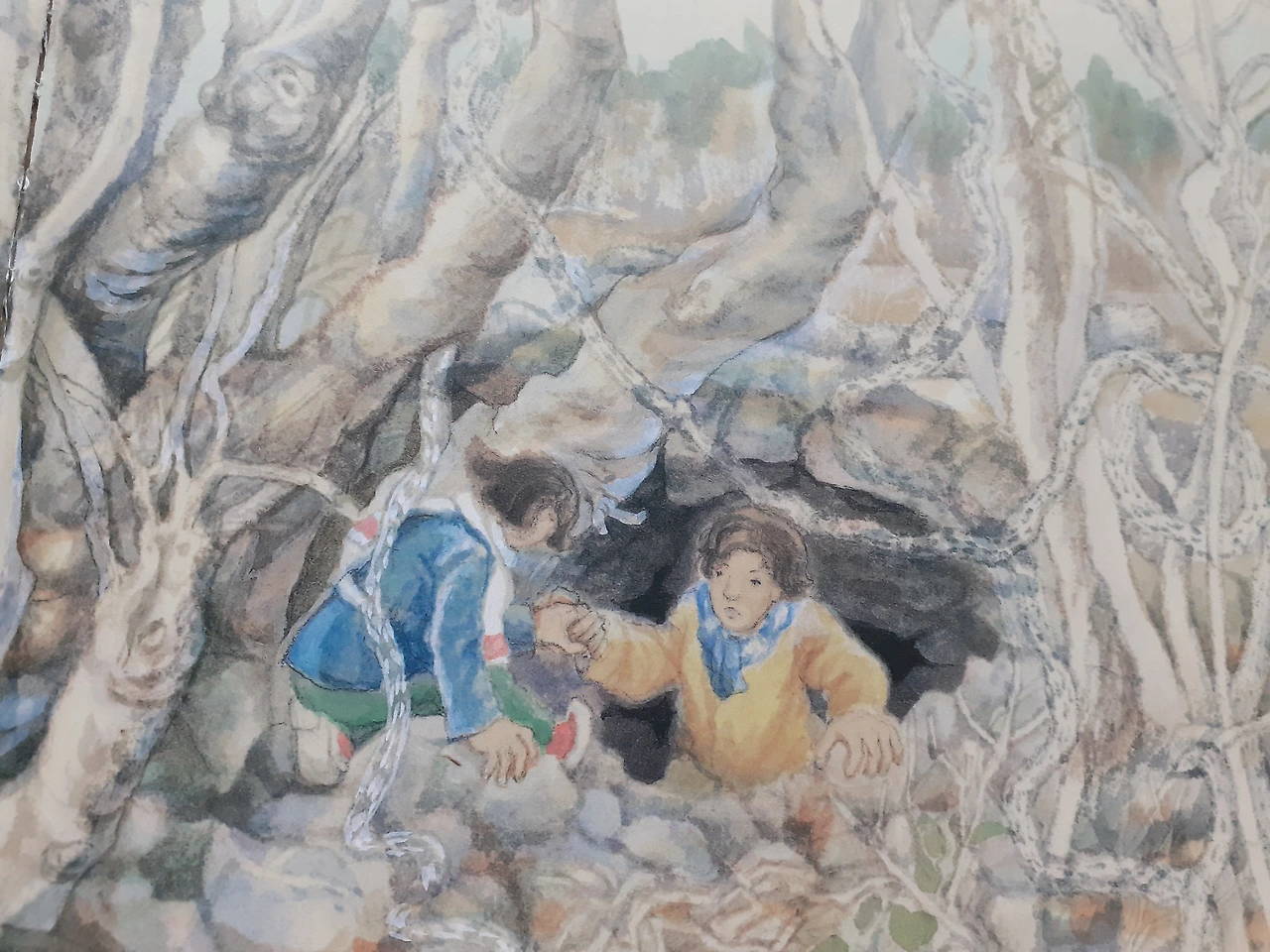 그림책 길 따라 가 본 그곳에서 이야기를 들려주려 나온 이들은 당시 가족, 친척을 잃은 사람들 지금은 할머니 할아버지가 된 나이 드신 분들이었다. 환하게 보고 들은 걸 담담하게 때론 흥분하며 말을 하는 그분들 위로 하늘은 파랬고 겨울 동안 더 여물어진 덤불 속 빨간 열매도 책에서 튀어나온 듯 듬성듬성 주변에 있었다.