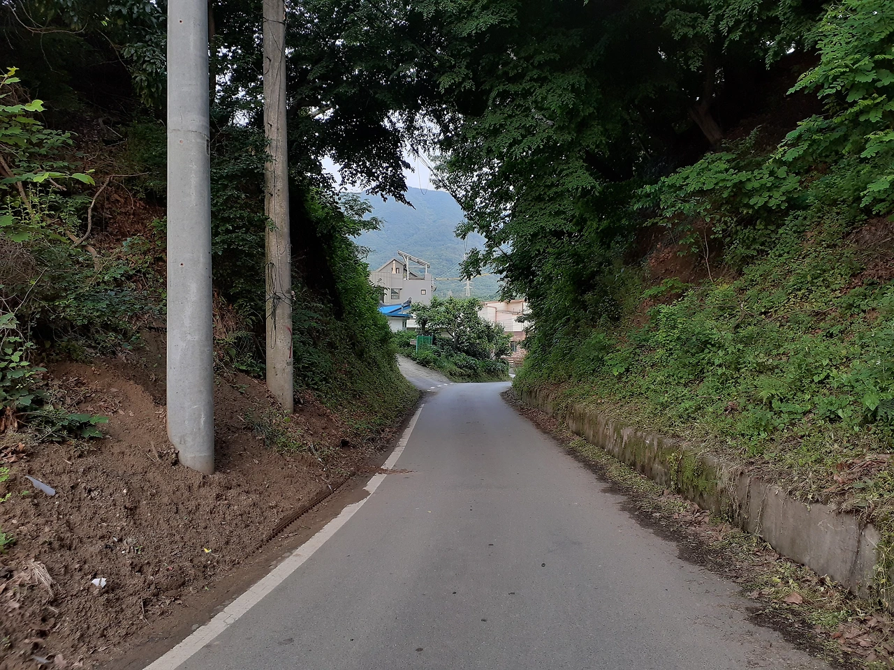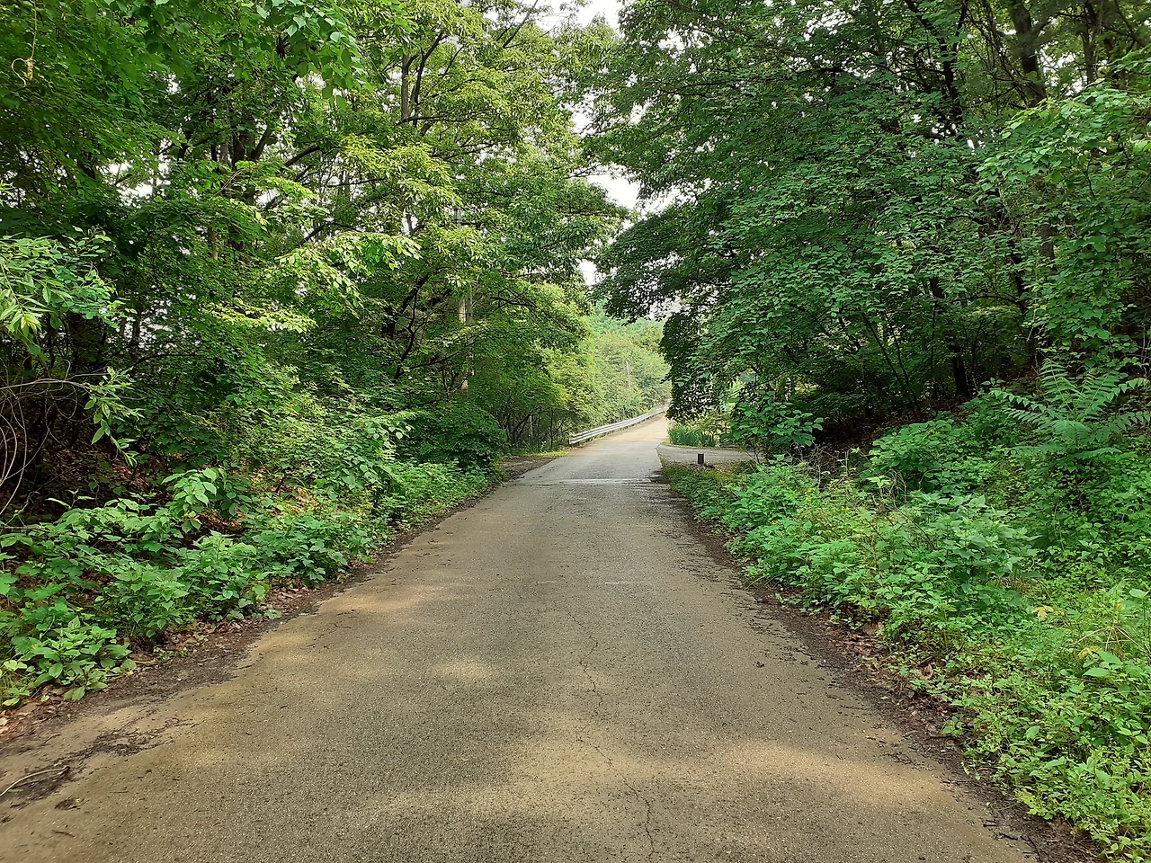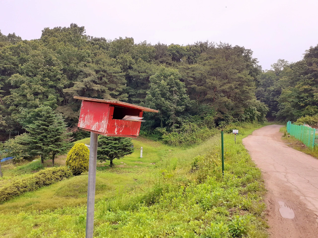 더 오르면 Y대 농장이 나오는 네 갈래 길에 이르게 되고 왼쪽 길 클릭! 다른 느낌의 오롯한 외길이다. 오히려 한적해지니 마치 숲 속 품에 안긴 듯 포근한 안도감이 들어 걸음걸이가 느려진다. 밤꽃 냄새가 도드라진 초여름 숲 냄새는 향긋하고 비릿하게 습기를 머금고 공기가 되었다. 마을에서 들은 그 뻐꾸긴지, 산울림으로 도드라진 뻐꾸기 소리(난 네가 하는 탁란을 알고 있지…)도 무죄.