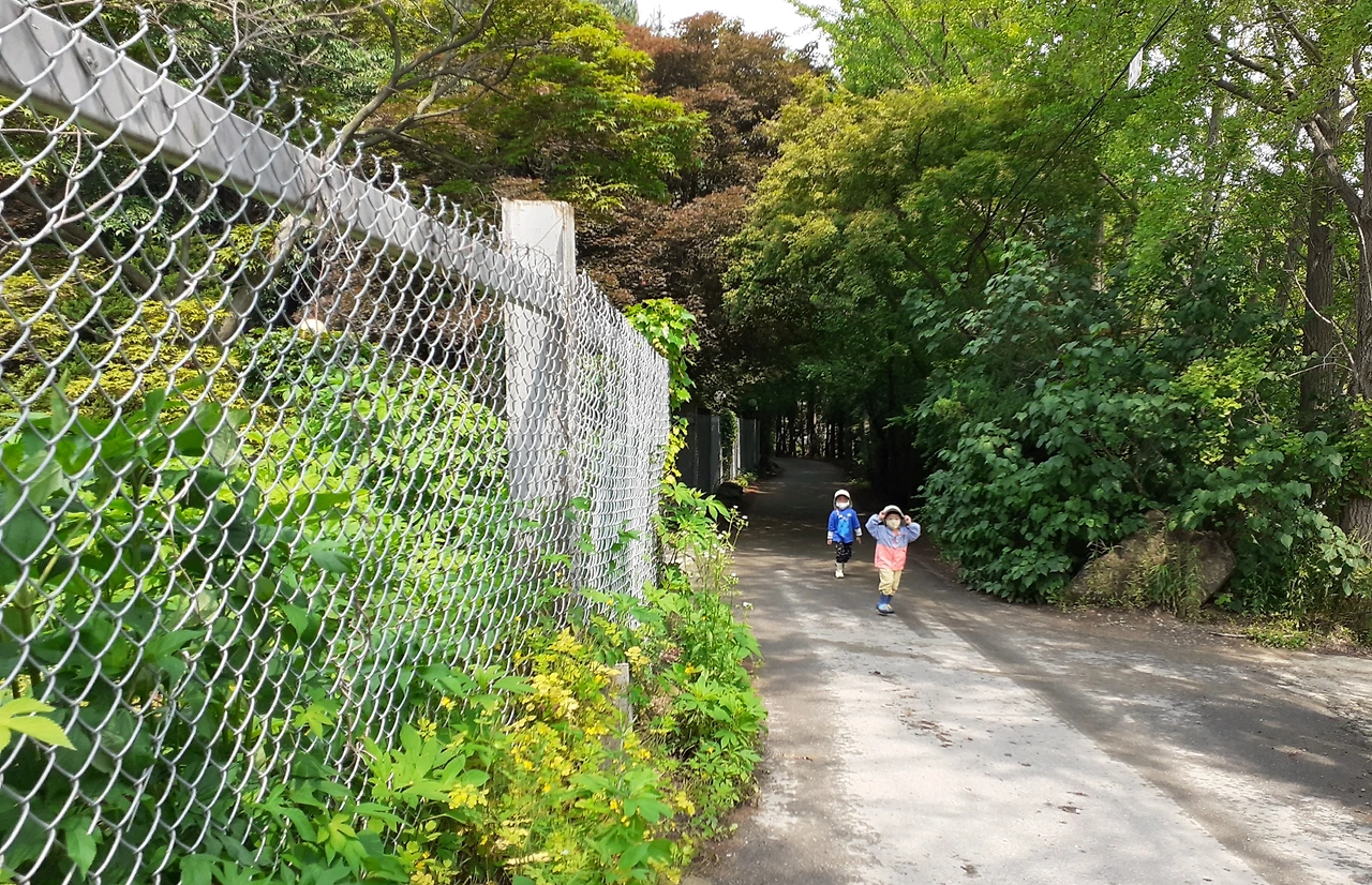 산책하는 어린이집 아이들 소리, 개 짖는 소리다. 사람 사는 곳 마을의 소리다.