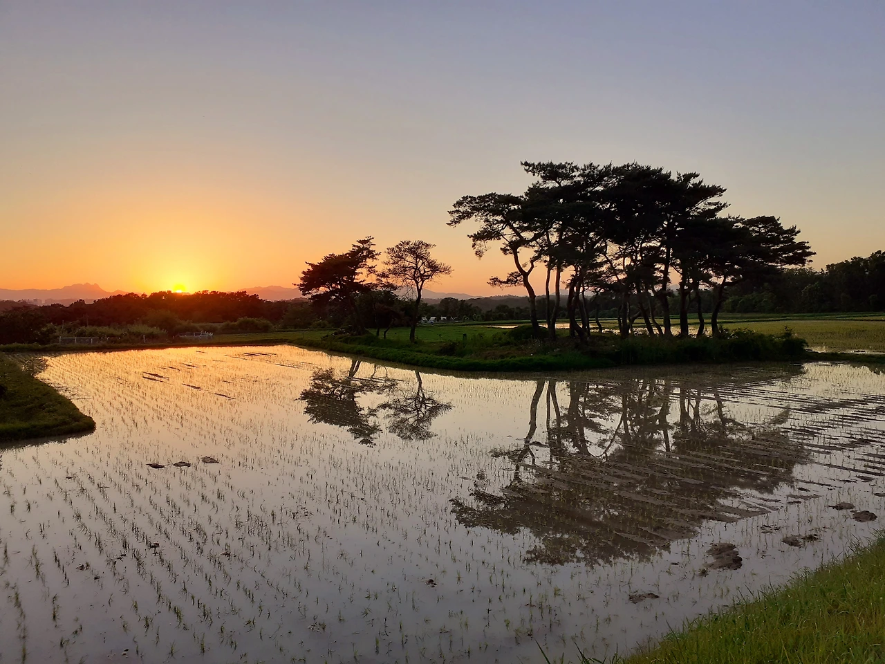 바다, 호수, 강.. 물에 비친 어느 노을이 예쁘지 않을까만 모내기한 논에 비친 노을이라니, 비록 어렸지만 많은 날들을 들판 가까이서 보냈는데 이토록 근사한 빛깔을 옆에 두고 난 무엇에 몰두하고 있었을까. 해질녘 오징어 가이생(가이상) 놀이를 하던 쩌렁쩌렁 온 동네가 울리도록 놀던 그날 우리들을 에워싼 것은 분명 노을빛이었고,