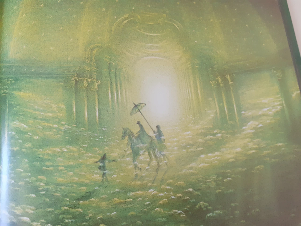 젊은 시절 몸으로 되돌아 간 듯 밝고 맑은 눈에 들어온 그곳은 천국으로 들어가는 문 앞이다. 천국 안으로 인도하는 화려한 빛깔의 그림자들은 알고 보니 오필리아가 거두어 준, 이제는 구원받은 그림자들이었고 그들이 함께 당도한 곳은 너무나 아름답고 화려한 극장이었다. 극장 문 위에는 이렇게 적혀 있었다,