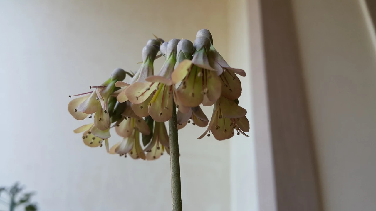 화분을 주로 두었던 앞 베란다 배수통 옆에 저렇게 천손초 아기(클론)가 뿌리를 내렸습니다. 저도 얼마 전에 발견하고 놀랐어요. 처음 천손초를 분양받아 키우며 여러 번 후회를 했었는데, 클수록 모습이 어떤 매력도 주지 못해서 말이지요. 그런데 어느 날 느닷없이 이렇게 곱고 우아한 꽃을 피우는 반전이 일어났습니다.