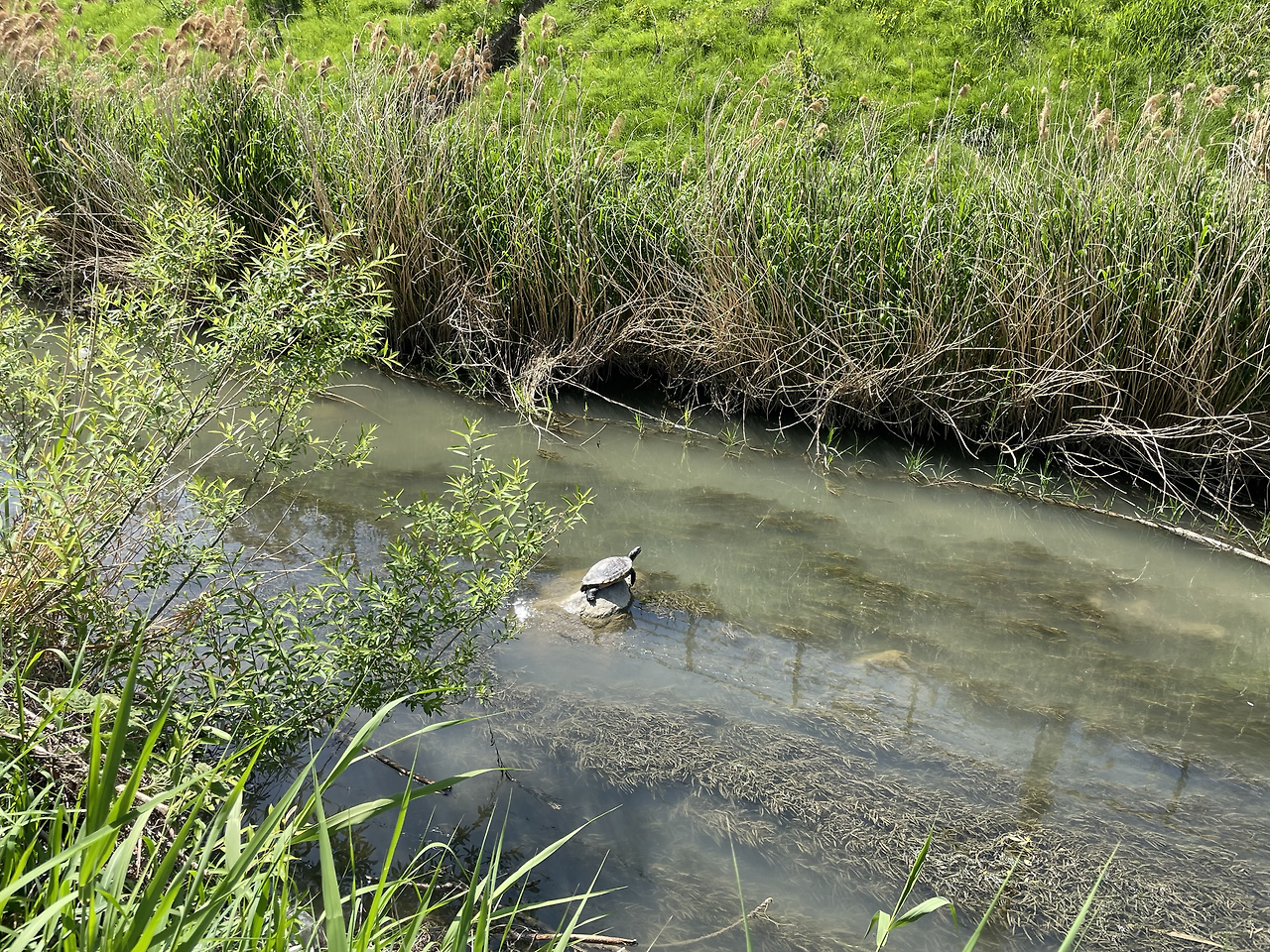 뱀과 회색빛 왜가리? 종류를 만나기도 했다. 앞만 보고 걷는데 발밑에 뱀이, 코앞 다리 난간에 사뿐히 내려앉는 큰 왜가리를 만났을 때 잠깐 우리 사이에 흐르는 긴장감은 조금 경이롭다. 멀리 보이면 조심해 사진을 찍을 수 있지만, 바로 앞에 느닷없이 나타나면 잠깐 긴장감이 깃든 장면은 곧 사라진다. 매우 예민한 그들에게 폰을 들이대는 건 예의가 아니다. 자그마한 자벌레도 폰을 들이대면 길 재기를 멈춘다.