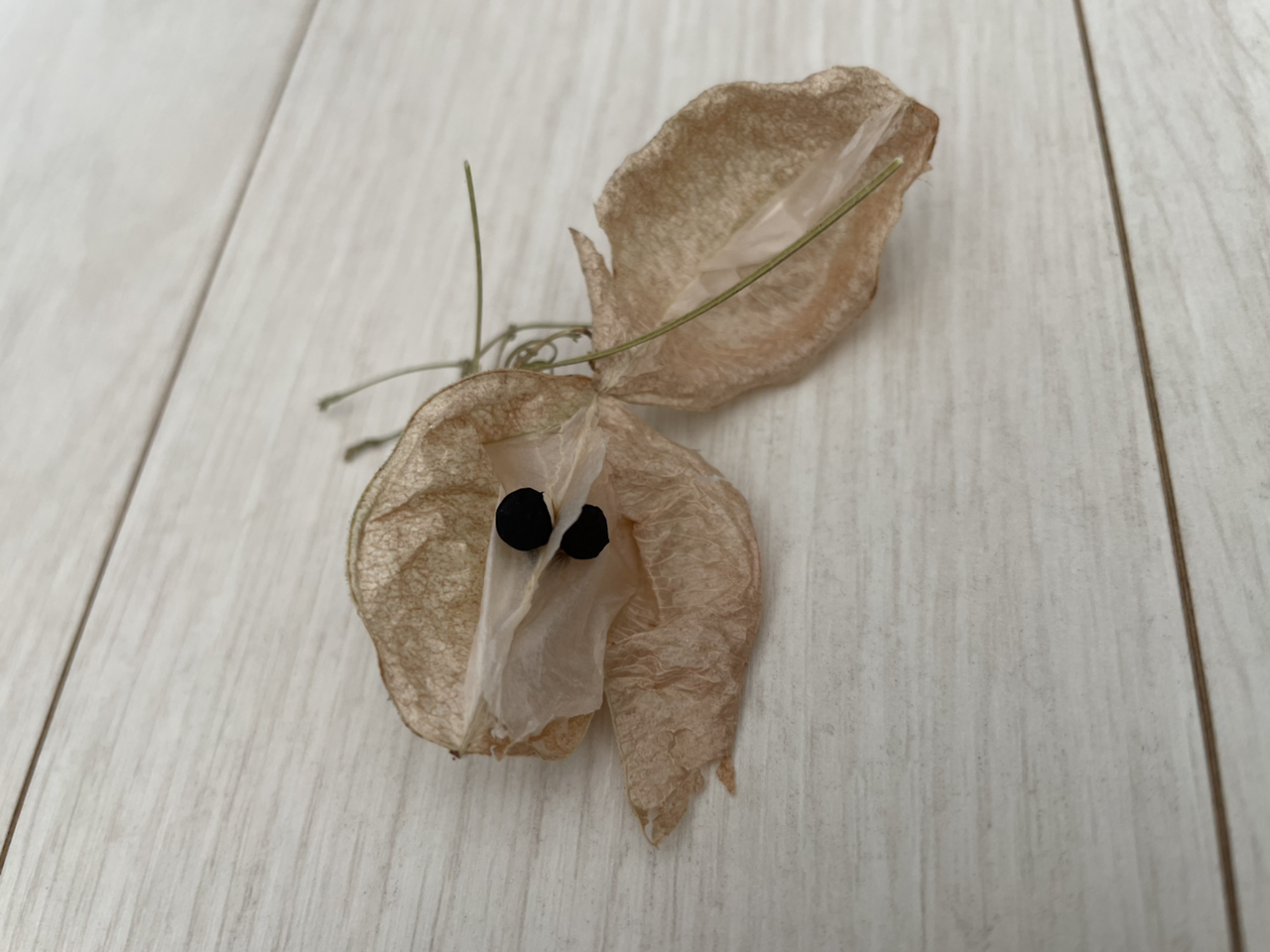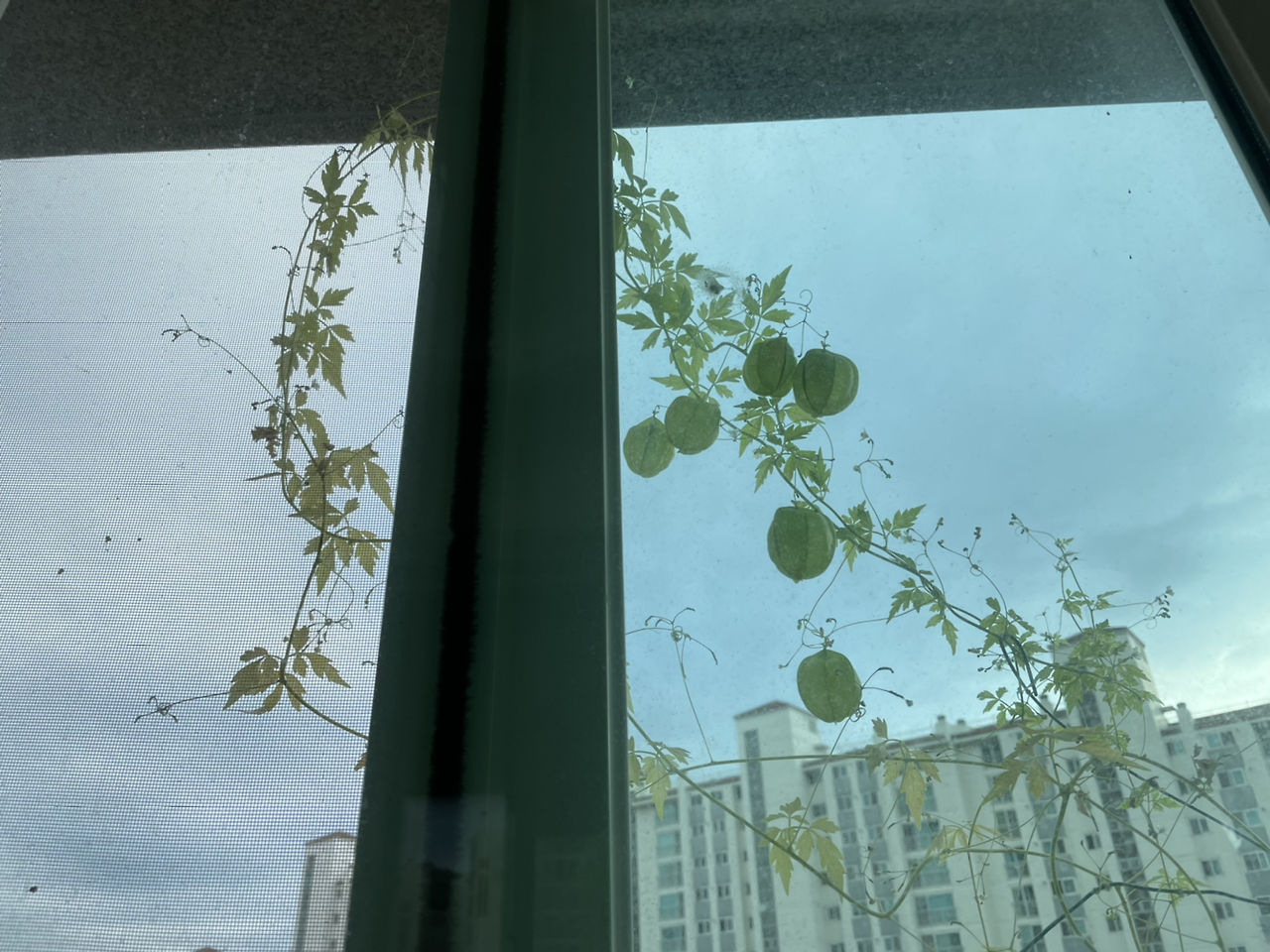 그런데, 정말 세상에 공짜는 없더라. 나팔꽃은 꽃봉오리 자체에서 수분이 되는지 어디에 있건 열매를 맺는데 풍선초는 달랐다. 실내에서 우아했던 덩굴의 여왕, 그녀의 풍선초는 자잘한 꽃만 폈지 풍선을 결국 매달지 못했다. 바깥에서 모진 풍파에 시달린 것은 비록 적은 개수이지만 기특하게도 열매, 풍선이 달렸다. 척박한 환경에 대한 위기감으로 그렇게 된 건지 바람이 중매쟁이였는지 알 수는 없지만, 고진감래라고 생명의 이유인 자손을 마침내 남기게 된 것이다.