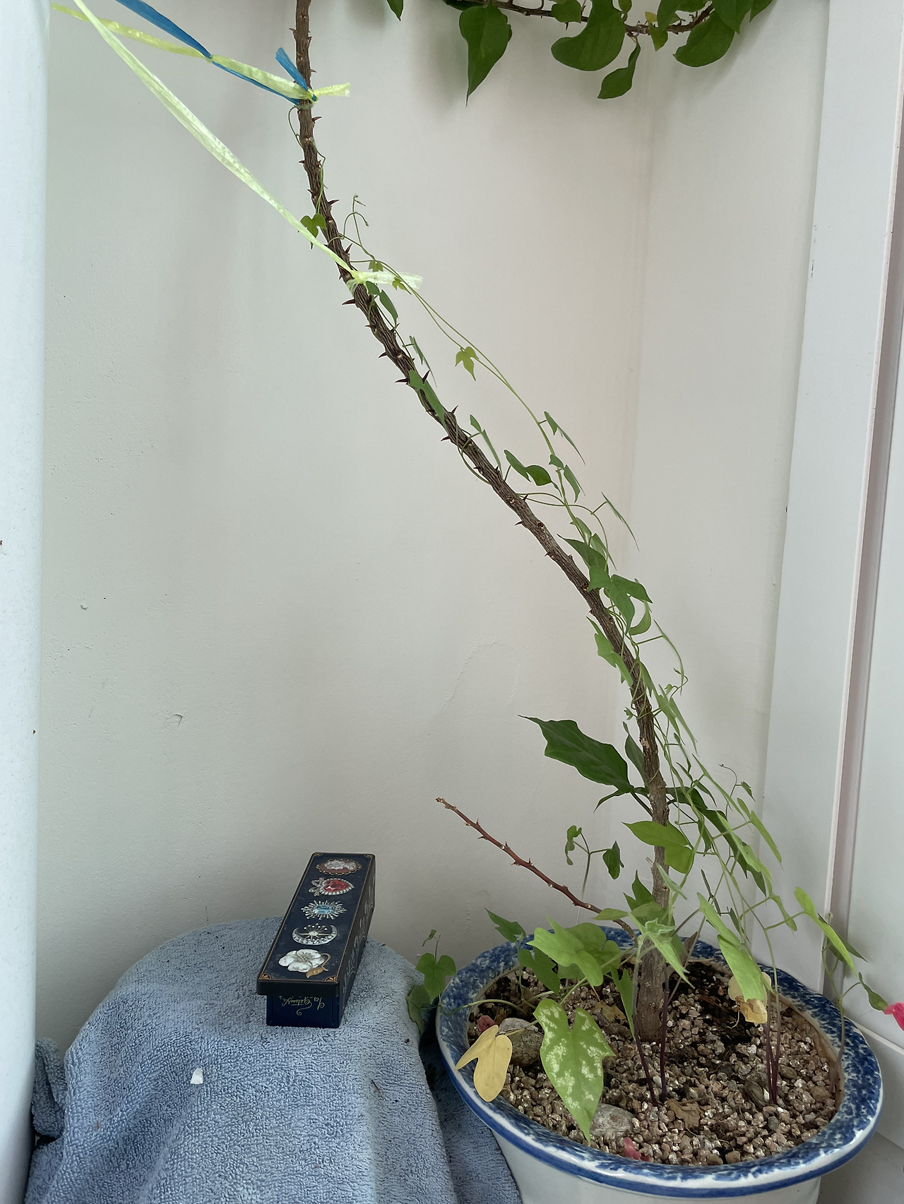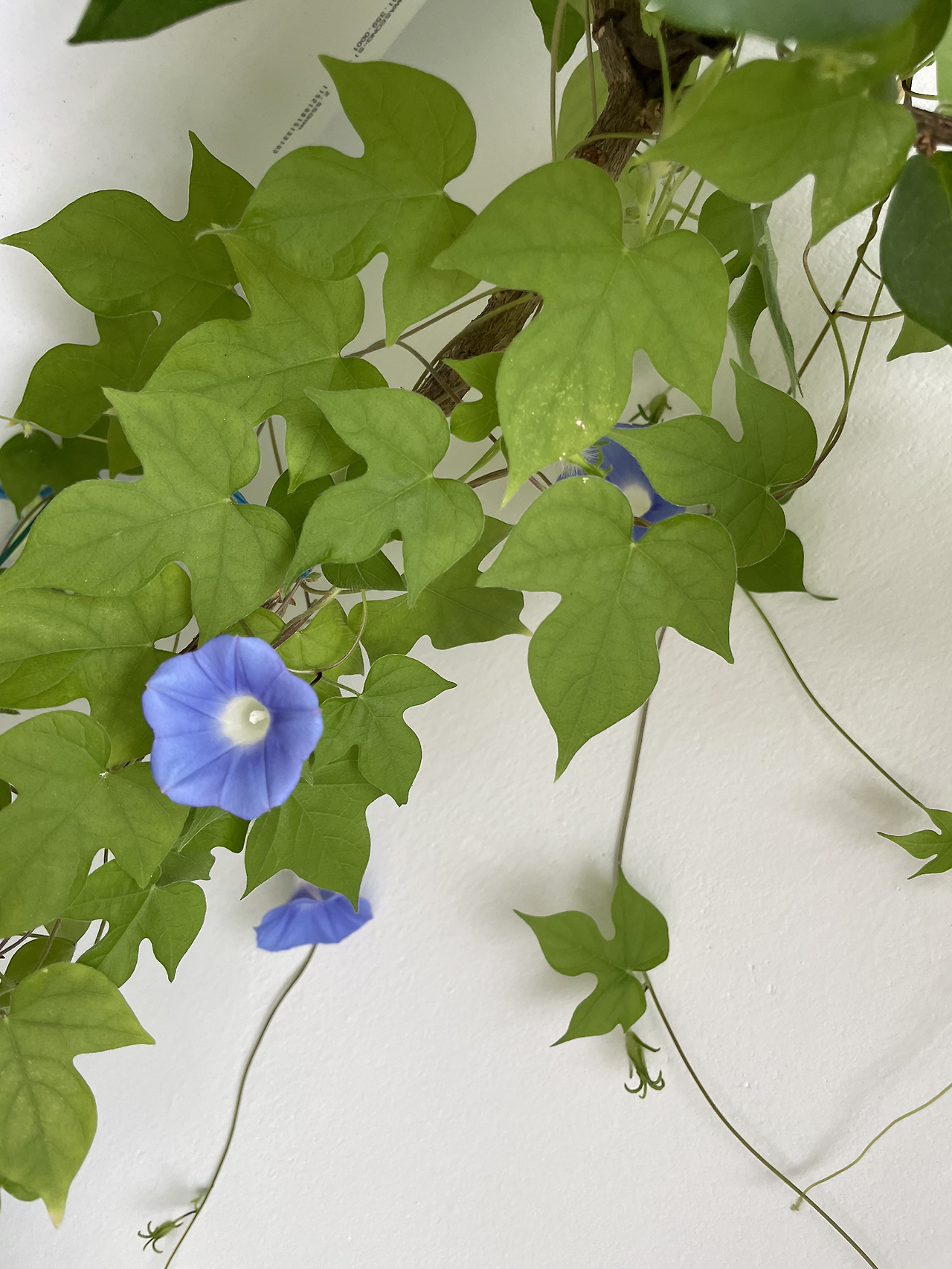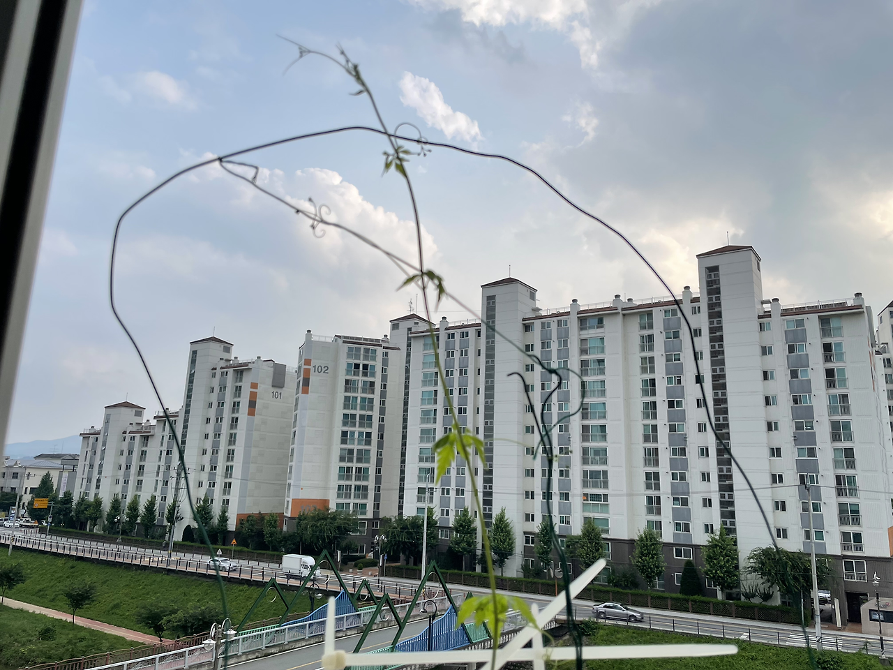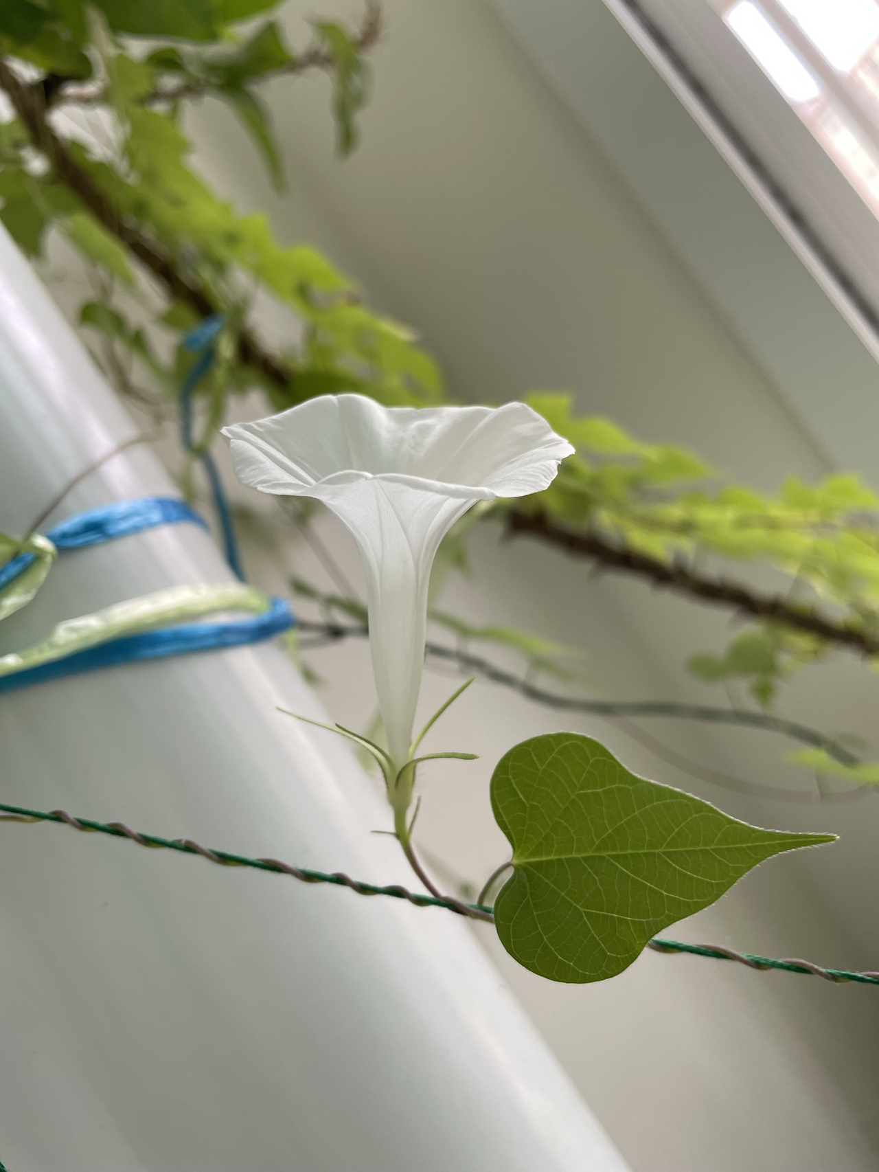 얻은 씨앗 네 알이 모두 발아되어 베란다 바깥 난간에서 무섭게 넝쿨을 자아내며 위로만 올라갔다. 처음 심어본 거라 위로만 향해 가는 줄 몰라, 난간 대을 넘긴 이후에는 매일 이 아이의 공중살이를 도우기 위해 고민해야만 했다.