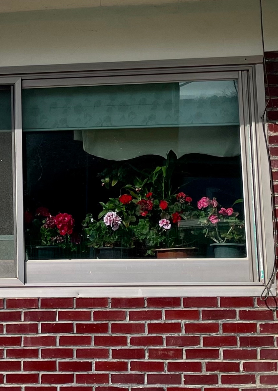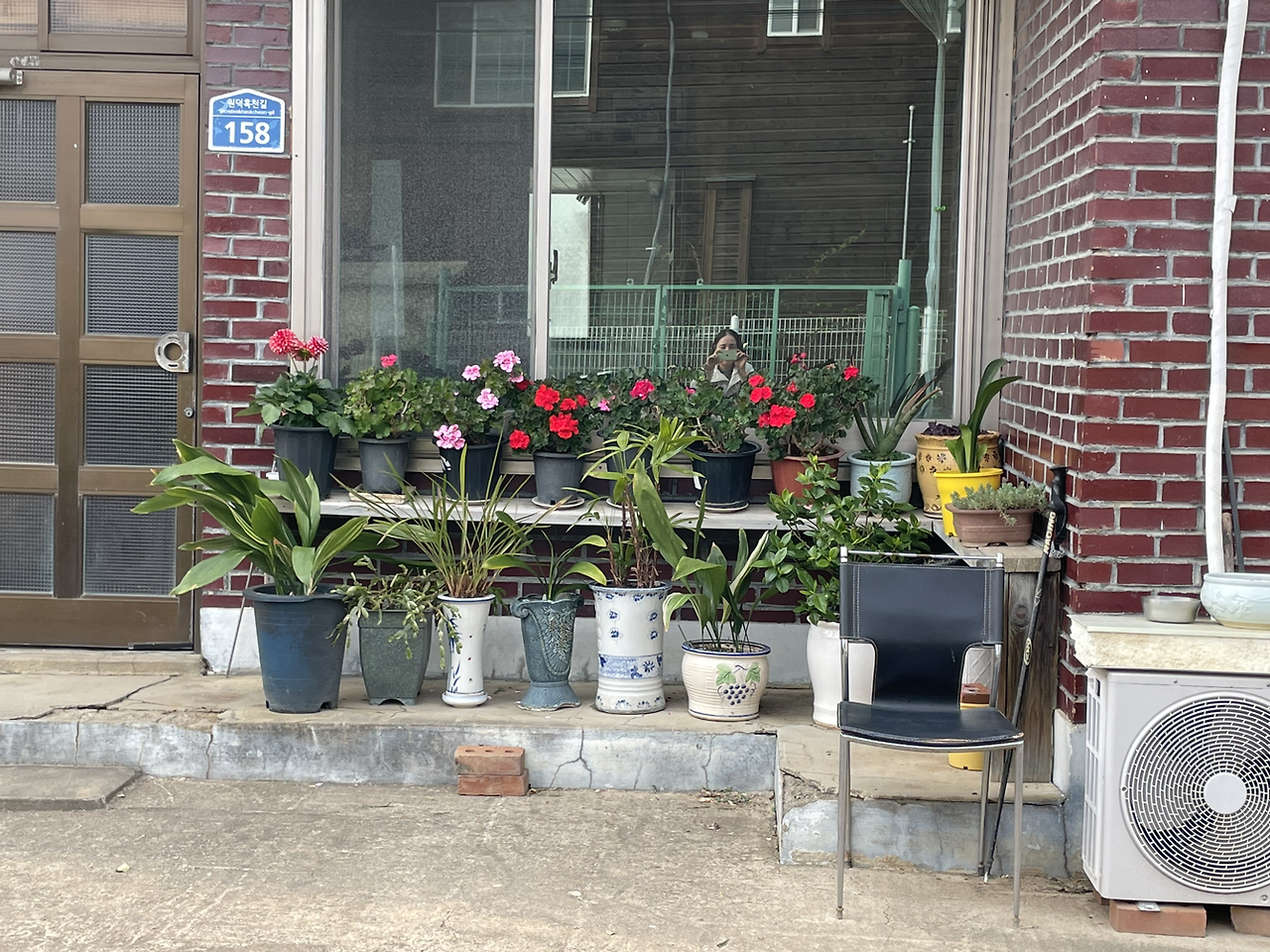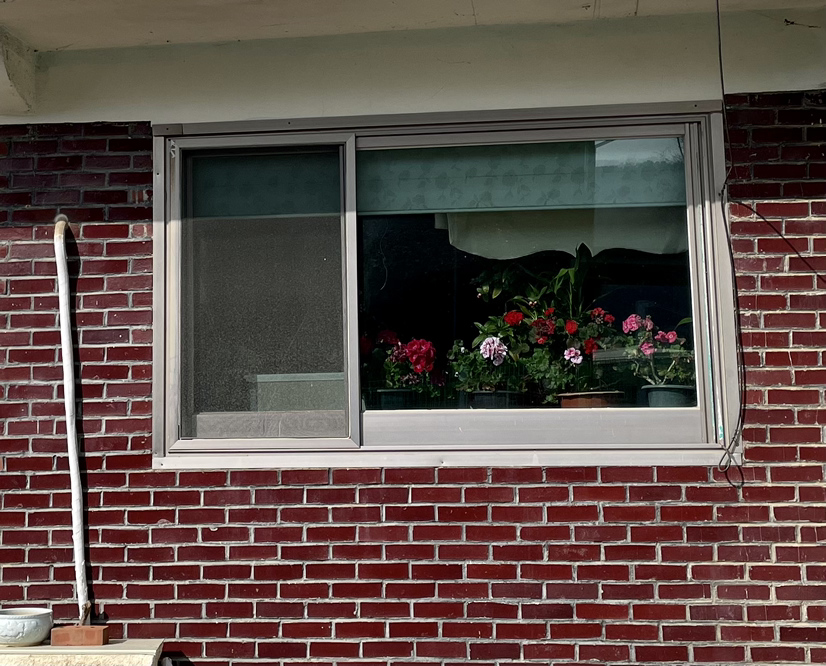여름이면 카누를 탈 수 있는 초록빛 흑천은 아직 얼어 있었으나 뚫린 사이로 냇물이 보 아래로 시원하게 흐르고 있었다. 물소리는 계절이 없다. 멀찍이 야생 오리 떼가 노닐고 있어 잠시 바라보다가 돌아섰다. 기차 시간이 남아 좀 추웠지만 천천히 걸으며 주변을 둘러보았다. 아직 어느 곳이든 회색빛이지만 혹시 성질 급한 봄기운은 없나 싶어 먹이 찾는 헝거리 울프처럼 기웃거려 본다. 그러다 원덕역 바로 앞 동네에서 진짜 봄을 발견했다! 봄은 꽃이라는 평범한 명제에 기대어 봄을 발견한 것이다. 여전히 밤이면 영하로 내려가는 날씨에 무슨 꽃이 피어 있겠나? 어느 집 화분 꽃이 화사하게 눈길을 끌었을 뿐이다. 겨울이라고 방에 들인 제라늄 화분이 창밖을 내다보며 쪼르르 소담스레 피어있었다. 온도만 맞으면 사시사철 어디서나 볼 수 있는 제라늄 꽃이지만 마치 몹시 기다리던 사람을 만난 것처럼 반가웠다. 멈춘 발길을 옮기며 오해받을까 주변을 두리번거리다 살짝 한 컷 했다.